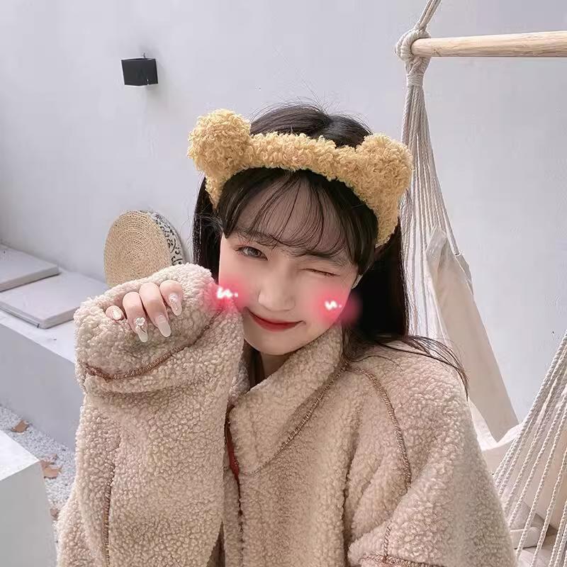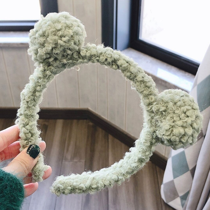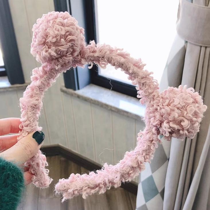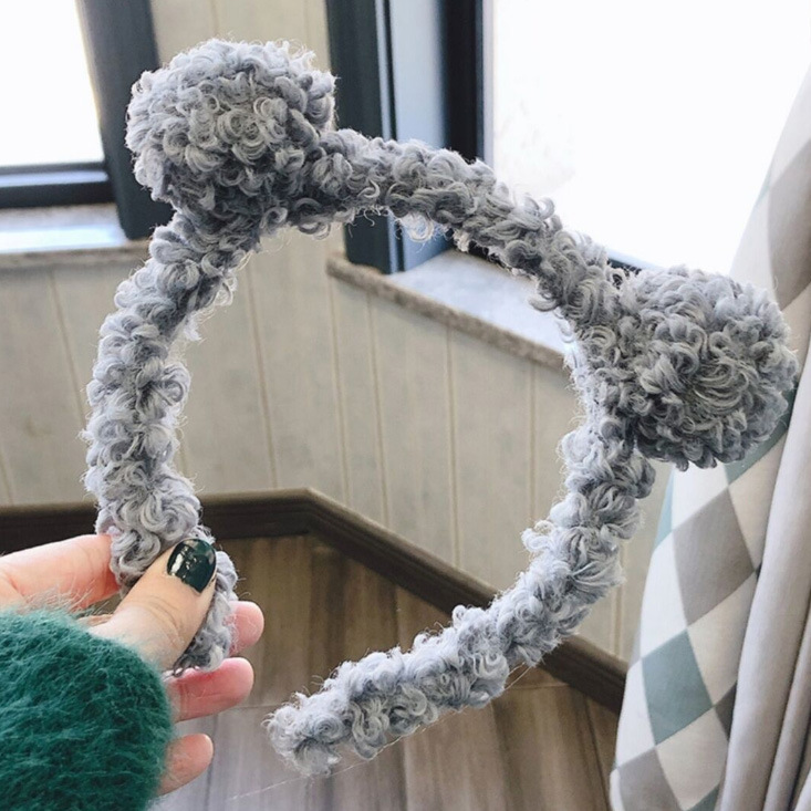 한국 인터넷 유명인 판매 귀여운 양고기 머리 곰 귀 헤어 볼 헤어 후프 한국 가을과 겨울 봉제 머리띠 헤어 카드스토어 가기