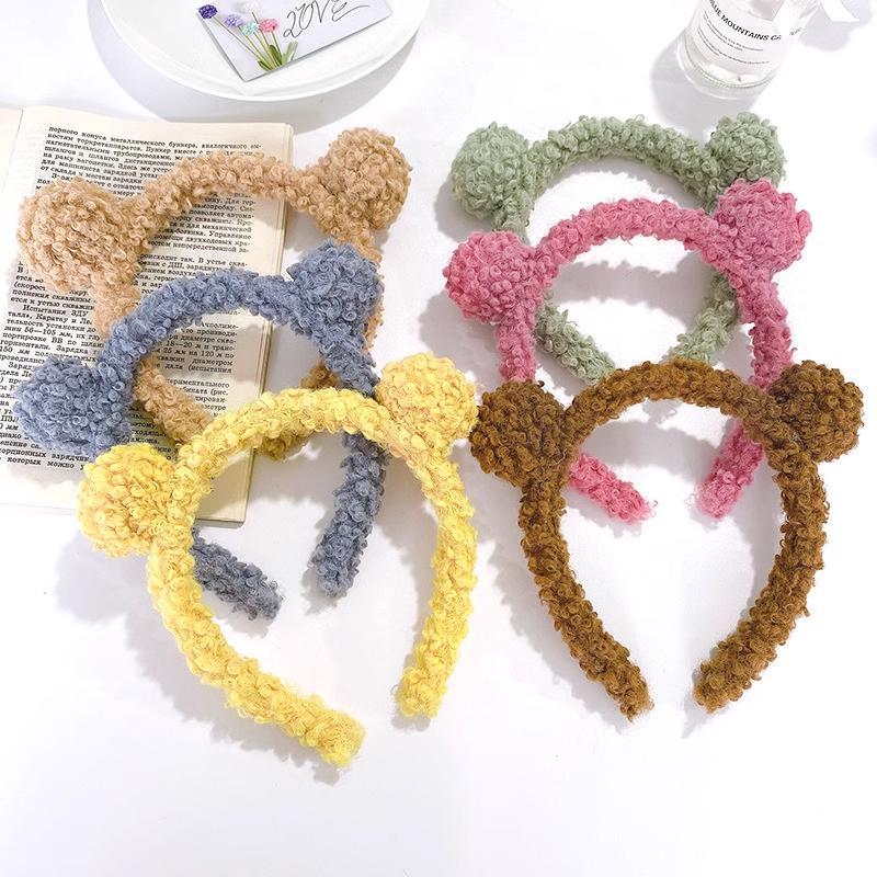 한국 인터넷 유명인 판매 귀여운 양고기 머리 곰 귀 헤어 볼 헤어 후프 한국 가을과 겨울 봉제 머리띠 헤어 카드