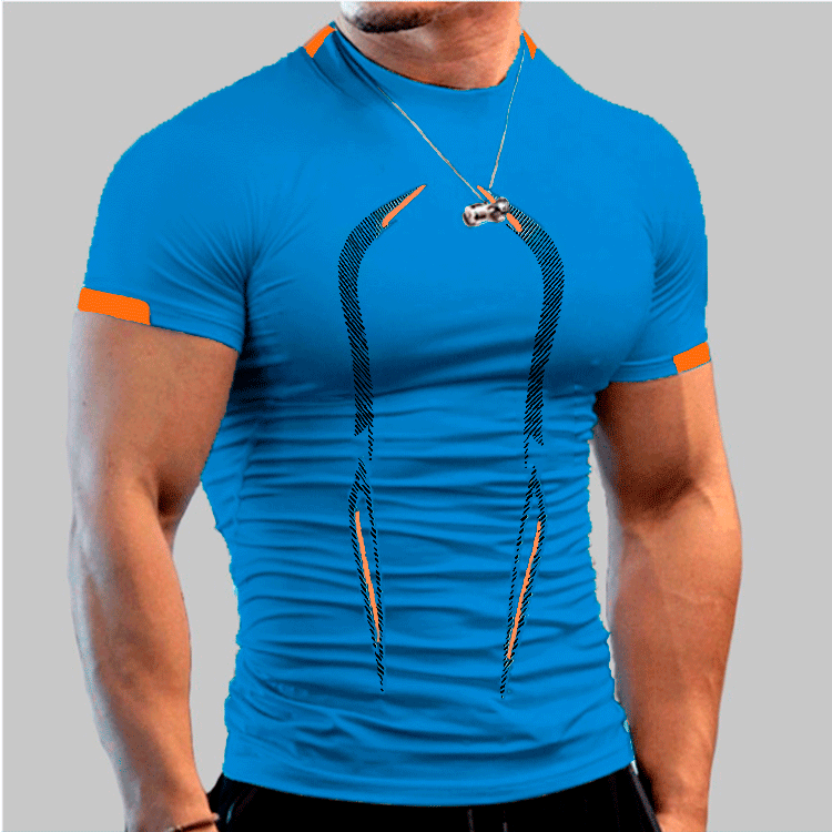 여름 남성 피트니스 스포츠 훈련 통기성 반팔 유럽 크기 속건 의류 스포츠 패션 티셔츠 공장 출하