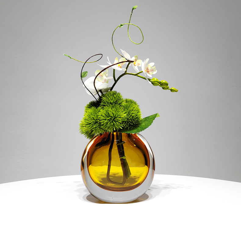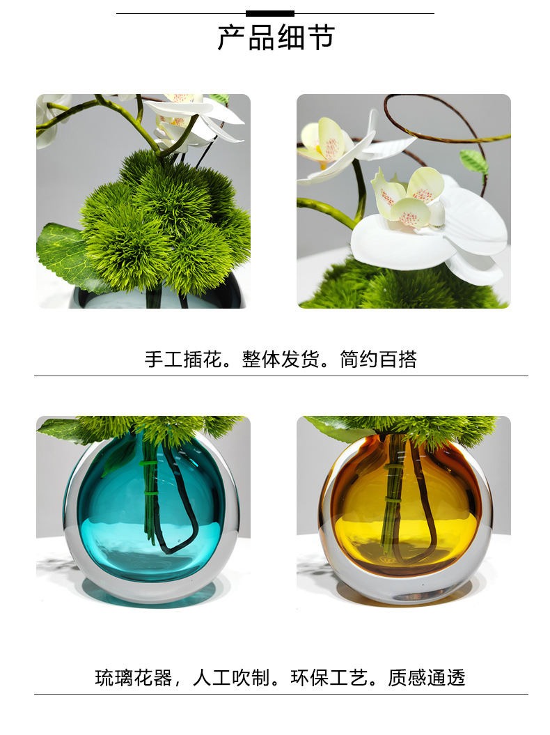 현대 빛 럭셔리 시뮬레이션 꽃 녹색 심기 유리 꽃꽂이 거실 식탁 판매 사무실 협상 데스크탑 부드러운 장식