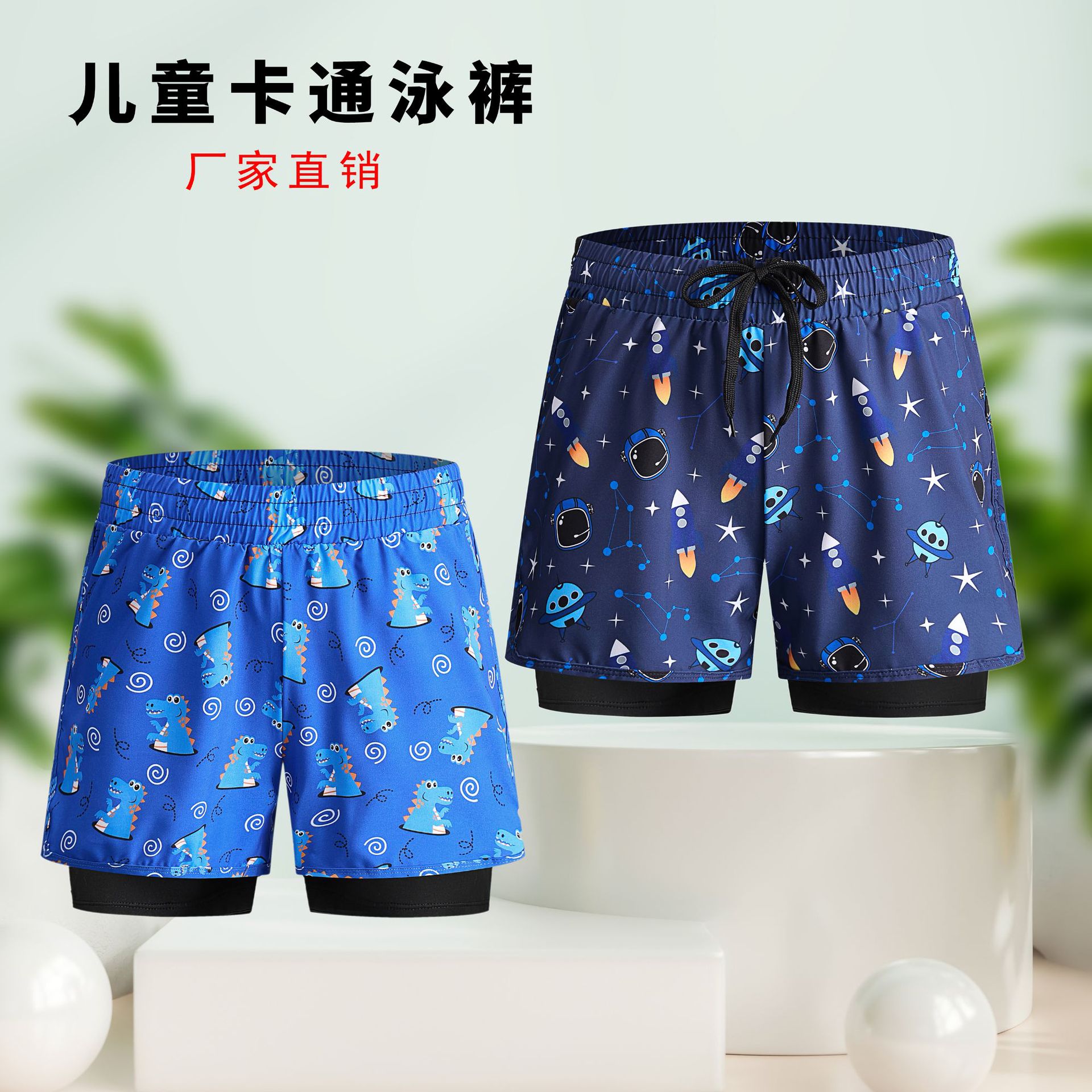 어린이 수영 트렁크 소년 전문 속건 통기성 2 층 수영 트렁크 대형 어린이 수영복 남아 당황 방지 복서 수영 트렁크스토어 가기
