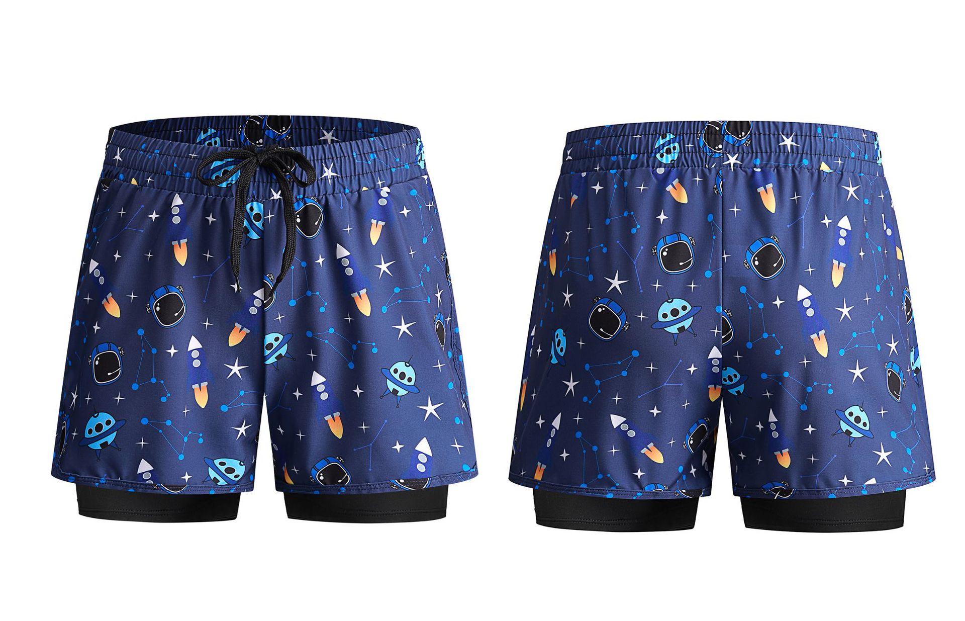어린이 수영 트렁크 소년 전문 속건 통기성 2 층 수영 트렁크 대형 어린이 수영복 남아 당황 방지 복서 수영 트렁크