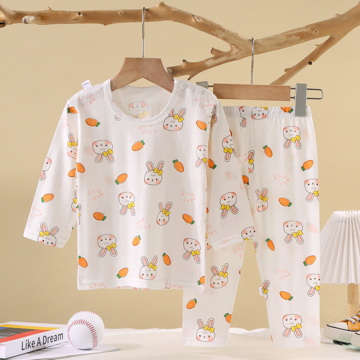 여름 어린이 면화 가정 옷 여자 스플릿 슬리브 아기 가벼운 에어컨 옷 소년 통기성 땀 흡수 잠옷