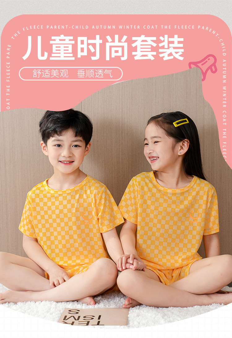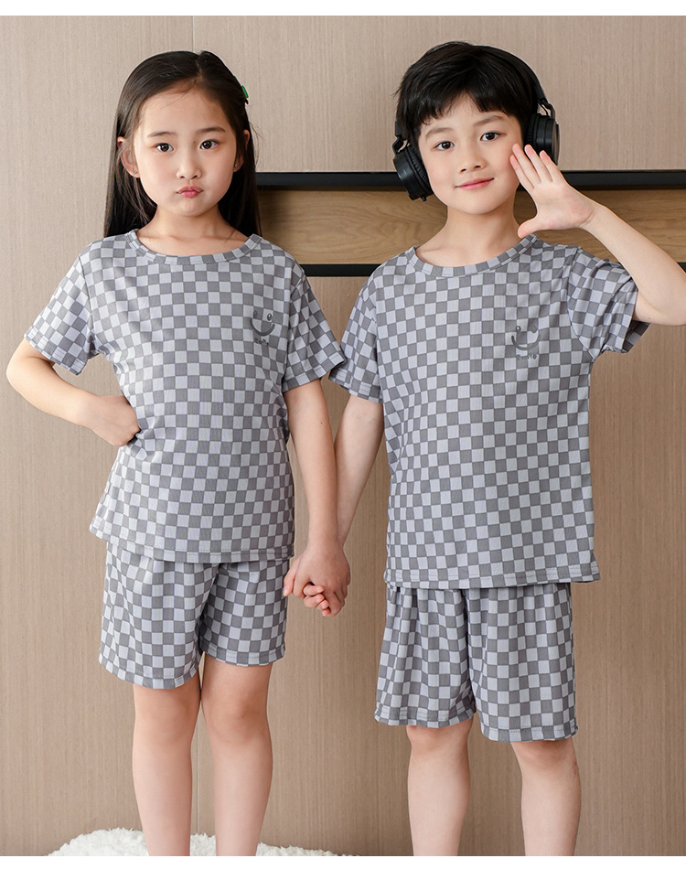 여름 어린이 세트 패션 격자 무늬 소년 소녀 스포츠 반팔 세트 여러 가지 빛깔의 3-10 세 어린이 의류 도매스토어 가기