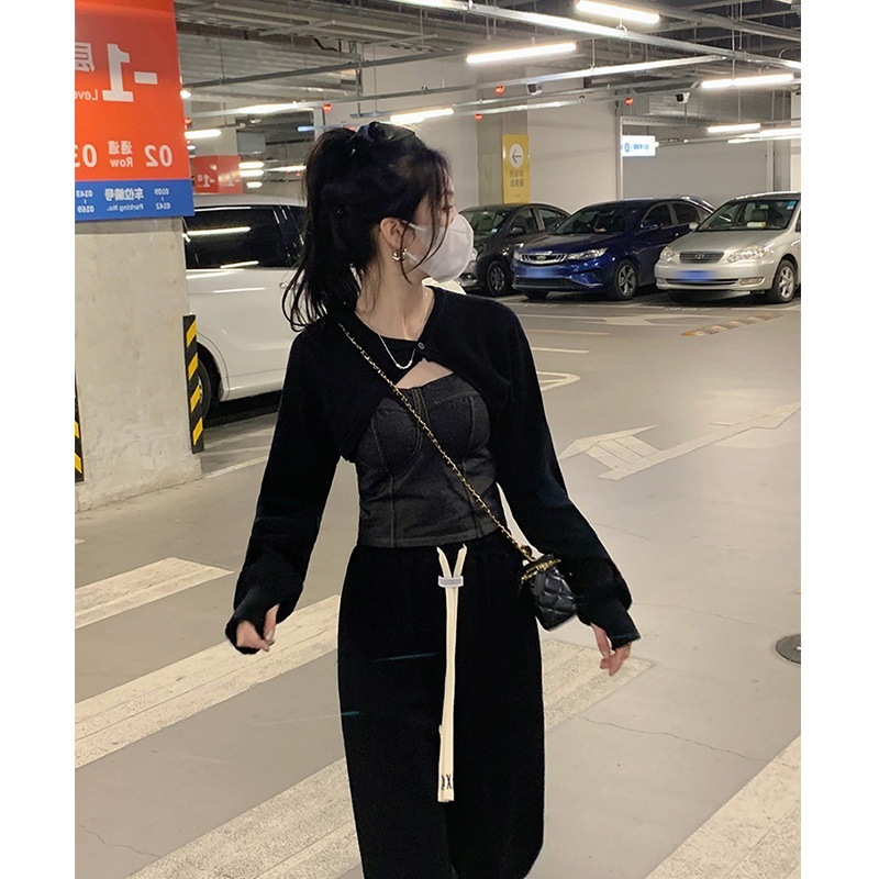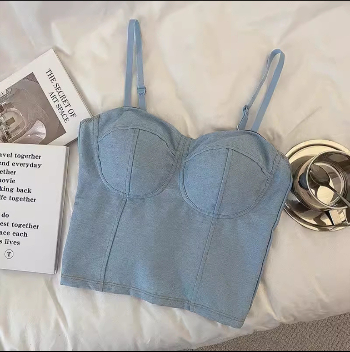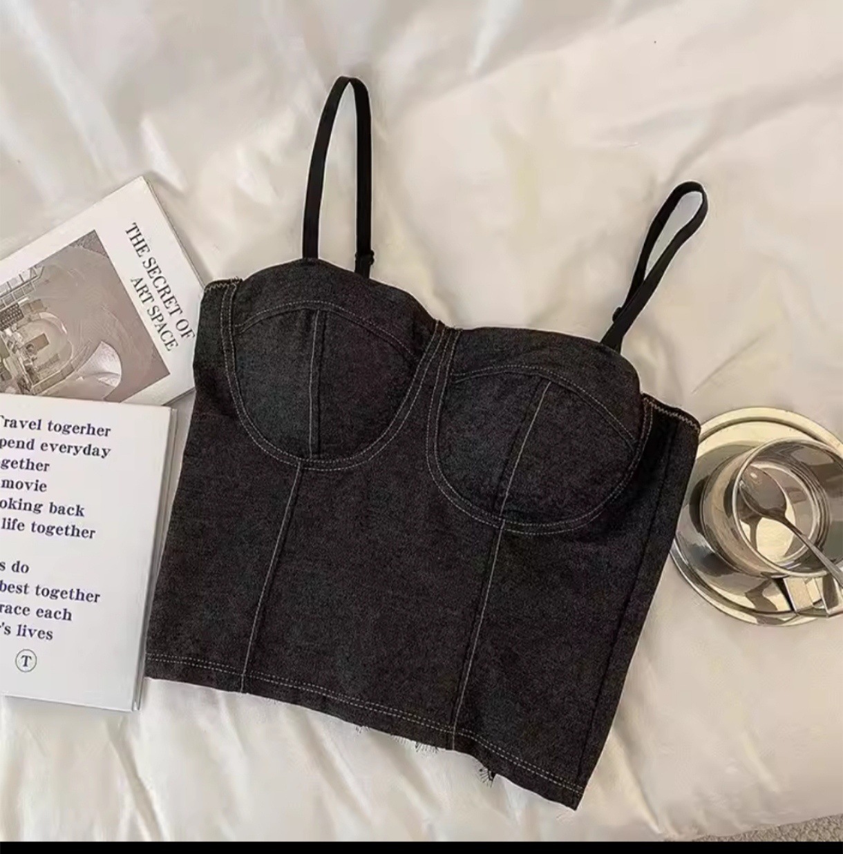 새로운 홍콩 스타일 데님 멜빵 가슴 패드 배꼽 조끼 모든 경기 아우터 웨어 민소매 탑 여성용 베이스 셔츠 끈이 없는 아름다운 등스토어 가기