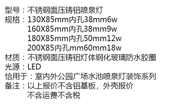 130mm-200mm 대형 분수 조명 공원 광장 실내 및 실외 수영장 분수 조명 쉘스토어 가기