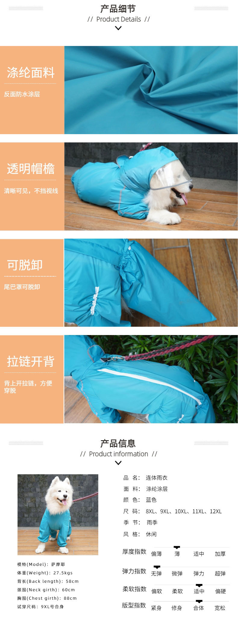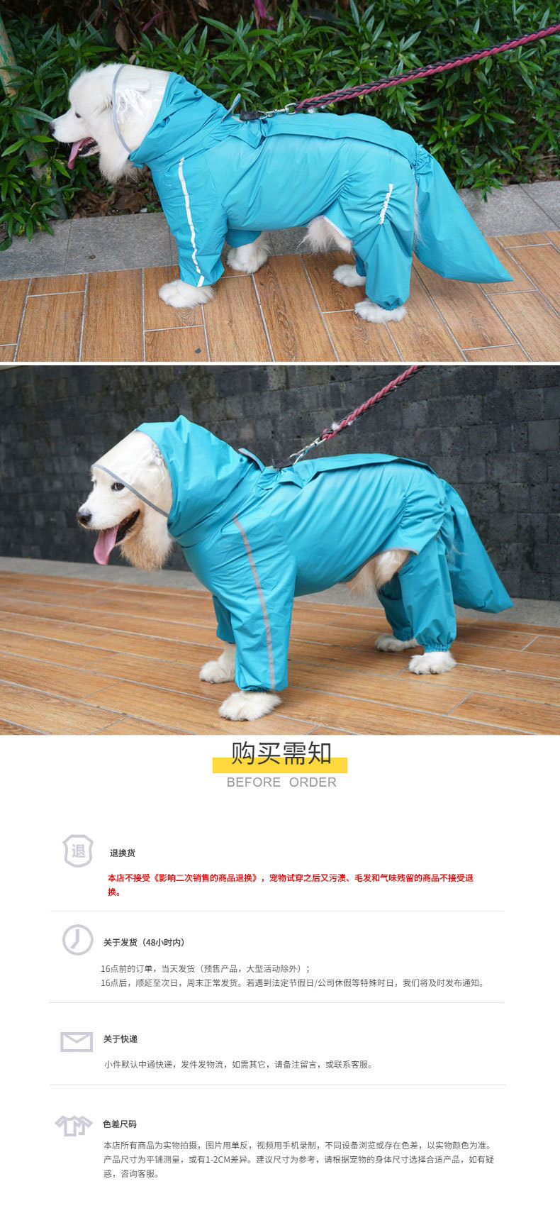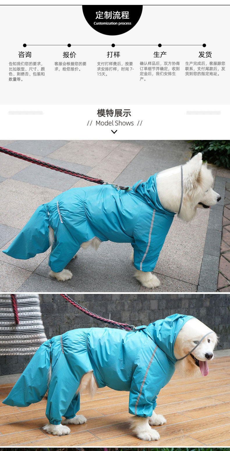 네 다리 모든 것을 포함하는 대형 개 애완 동물 비옷 국경 동물 축산 사모 래브라도 황금 머리 개 옷 방수 판초