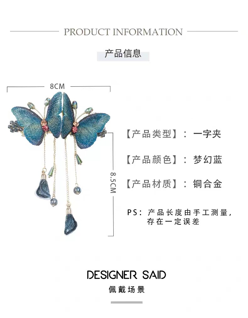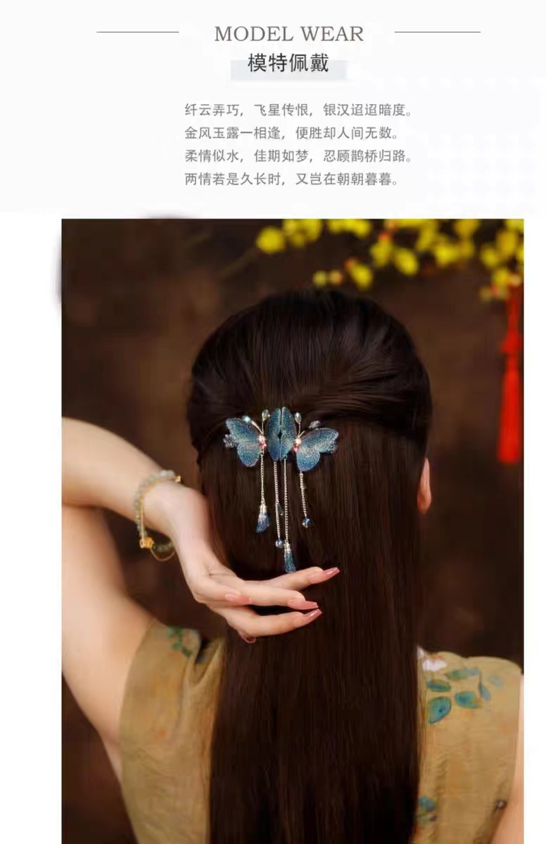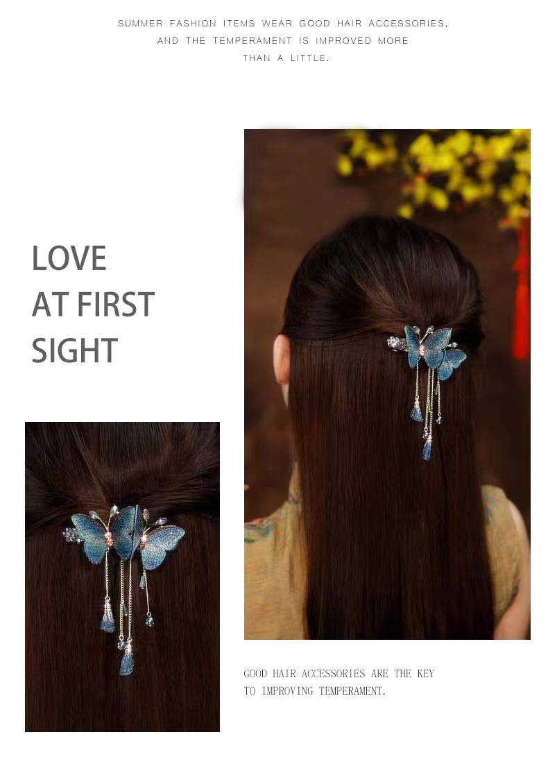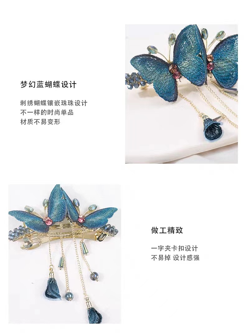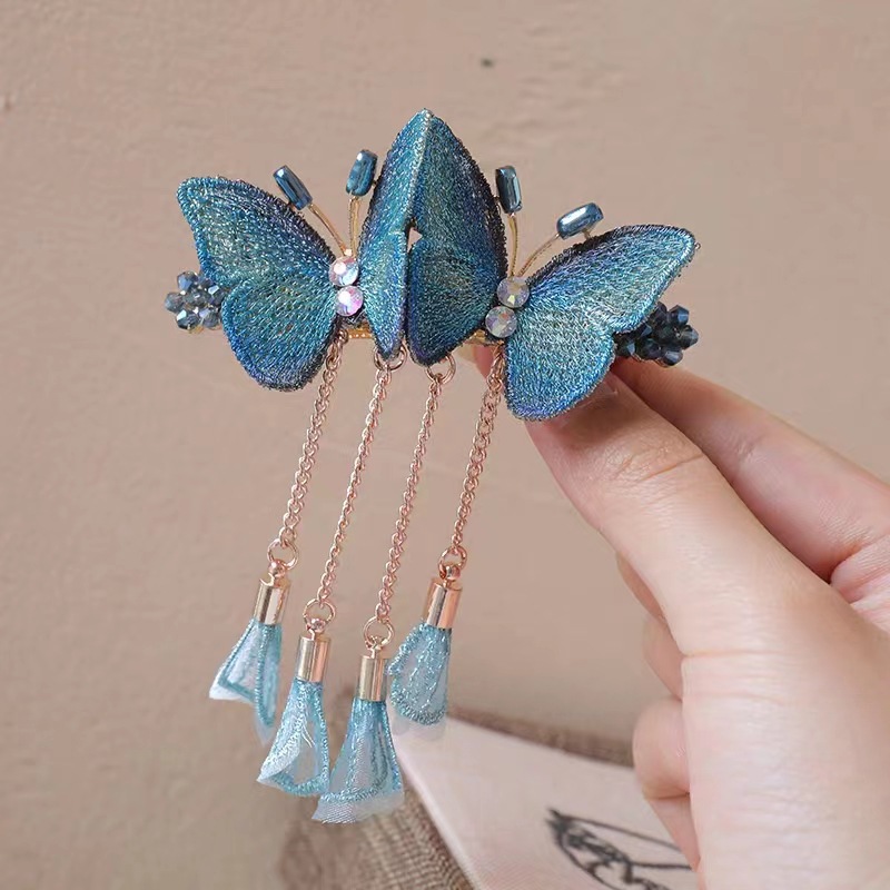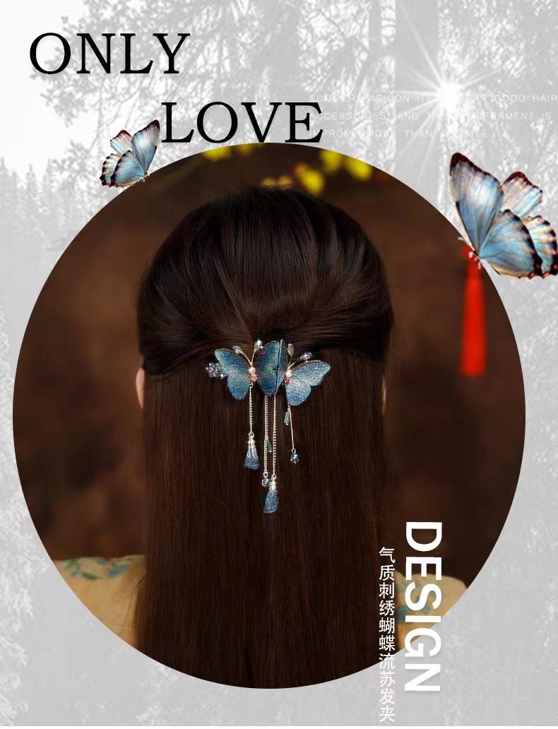 우아한 자수 나비 술 머리핀 봄 클립 백 헤드 플라워 디자인 틈새 2023 새로운 헤어 액세서리스토어 가기