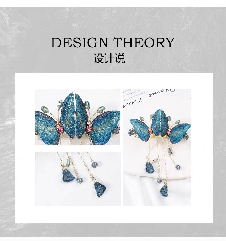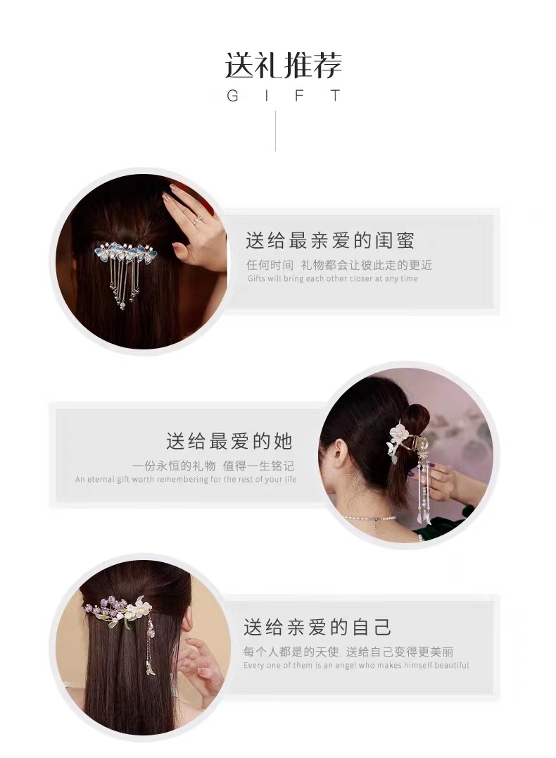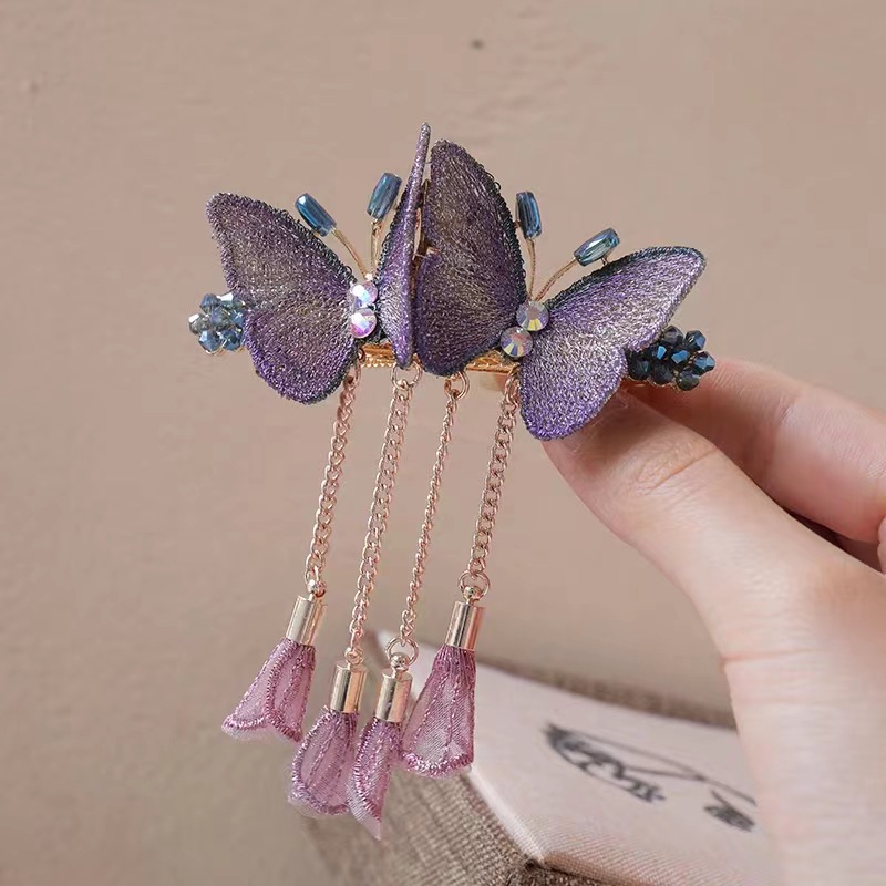우아한 자수 나비 술 머리핀 봄 클립 백 헤드 플라워 디자인 틈새 2023 새로운 헤어 액세서리