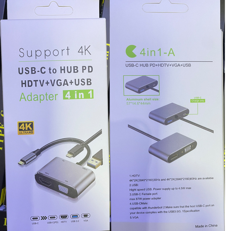 • 노란색 박스 4 in 1-회색 [HDMI + VGA + USB3.0 + PD]]