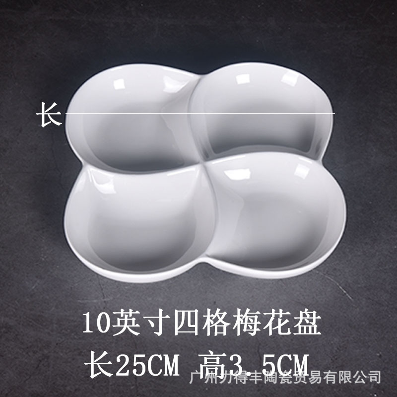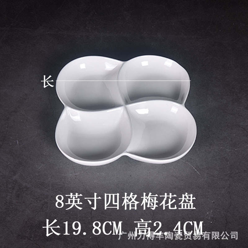매화 4 그리드 플레이트 세라믹 차가운 접시 접시 두꺼운 순수한 흰색 호텔 식기 멀티 그리드 과일 플레이트 콜드 플래터