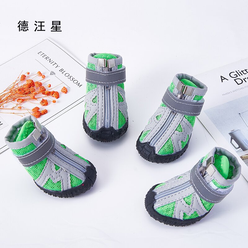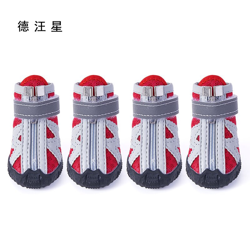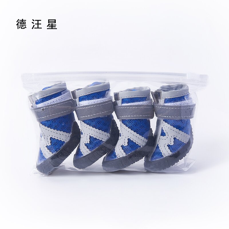 Dewangxing 브랜드 사계절 강아지 신발 4개 세트 및 통기성 미끄럼 방지 애완견 소형견스토어 가기