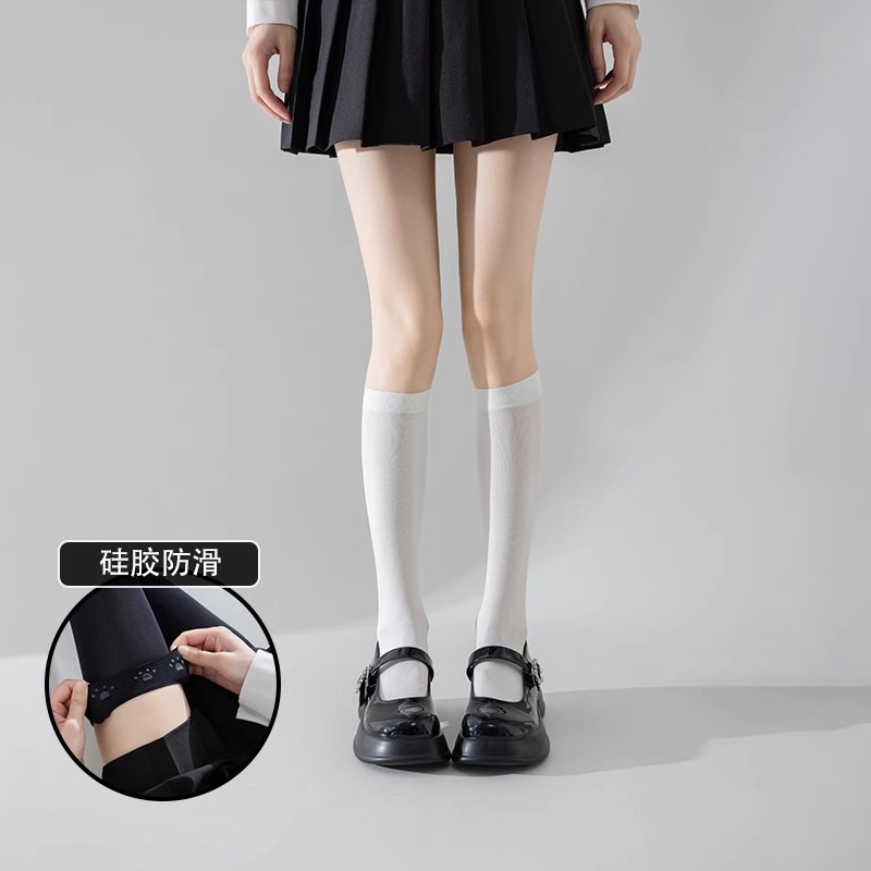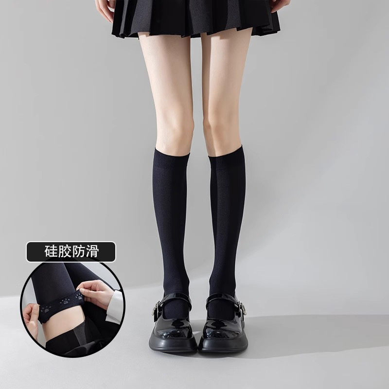 검은 양말 여성용 봄과 여름 중간 길이 양말 쌓여 무릎 위 스타킹 jk 새끼 스타킹 압력 얇은 다리 스타킹스토어 가기