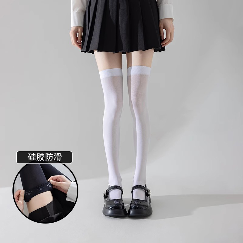 • 무릎위양말-화이트 [고양이발톱 실리콘 미끄럼방지]