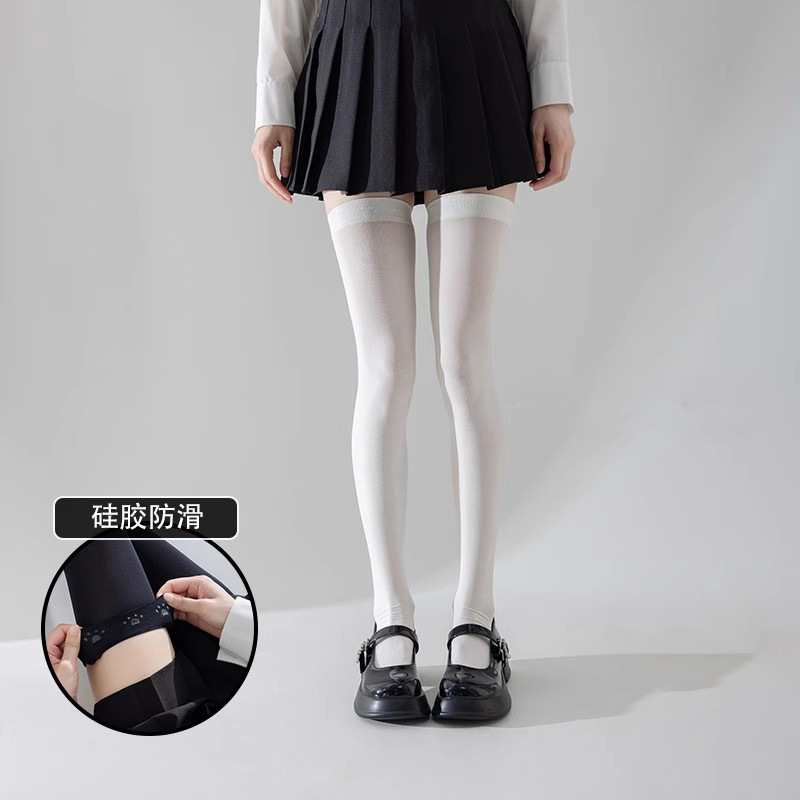 • 무릎위양말 - 밀크화이트 [고양이발톱 실리콘 미끄럼방지]