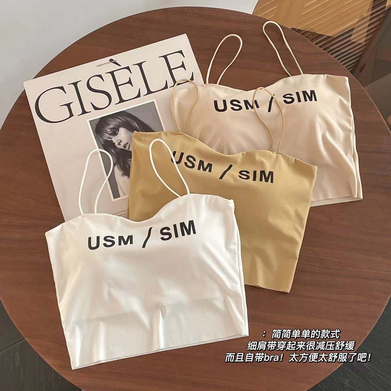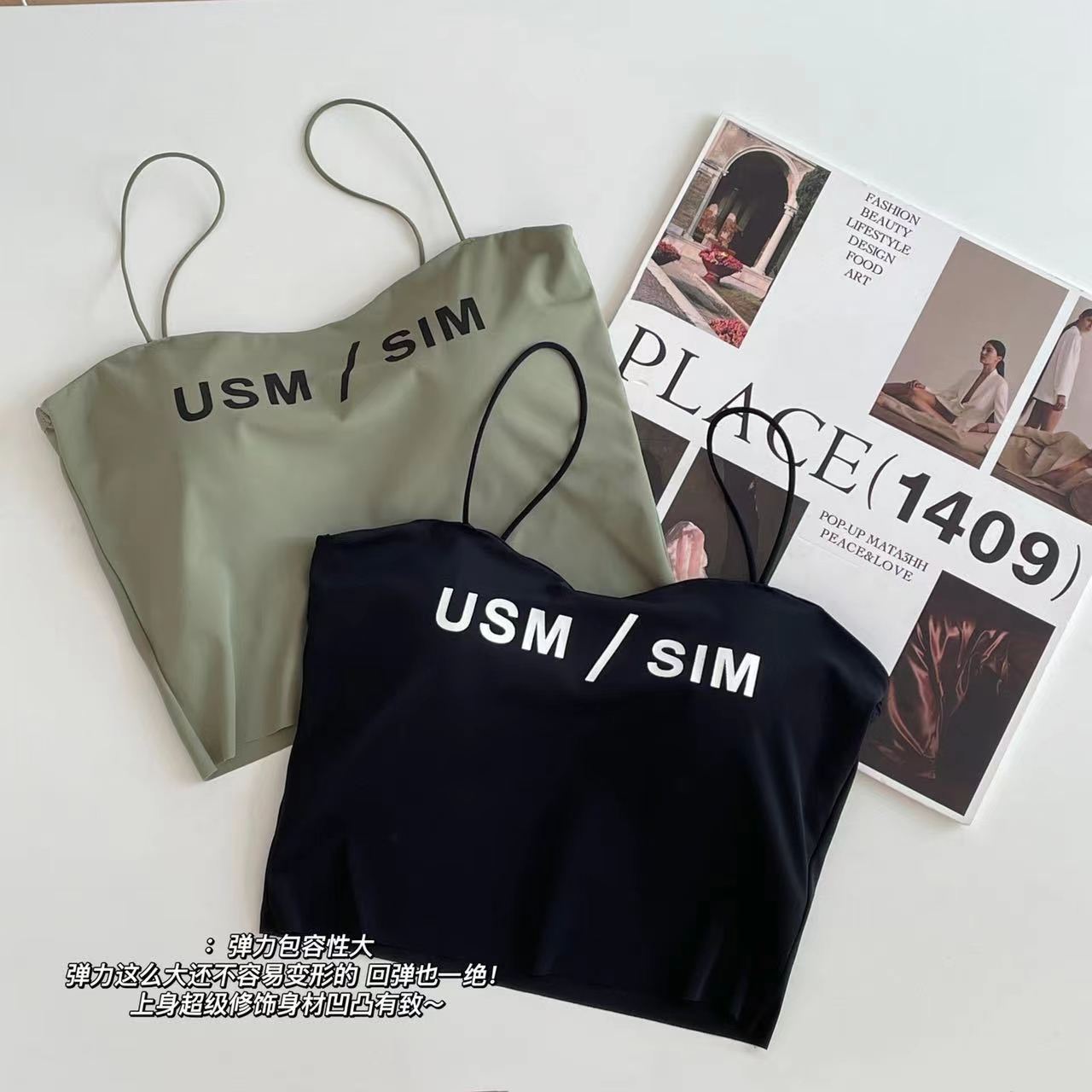 모든 경기 한국식 스트랩 아름다운 스트랩 가슴 패드 원피스 조끼 여성용 새로운 내부 착용 겉옷 민소매 슬림 핏 하의