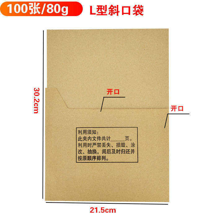 100 PC A4 크래프트 종이 반 가방 파일 분류 비스듬한 포켓 L 형 재료 저장 가방 파일 가방 빈 가방