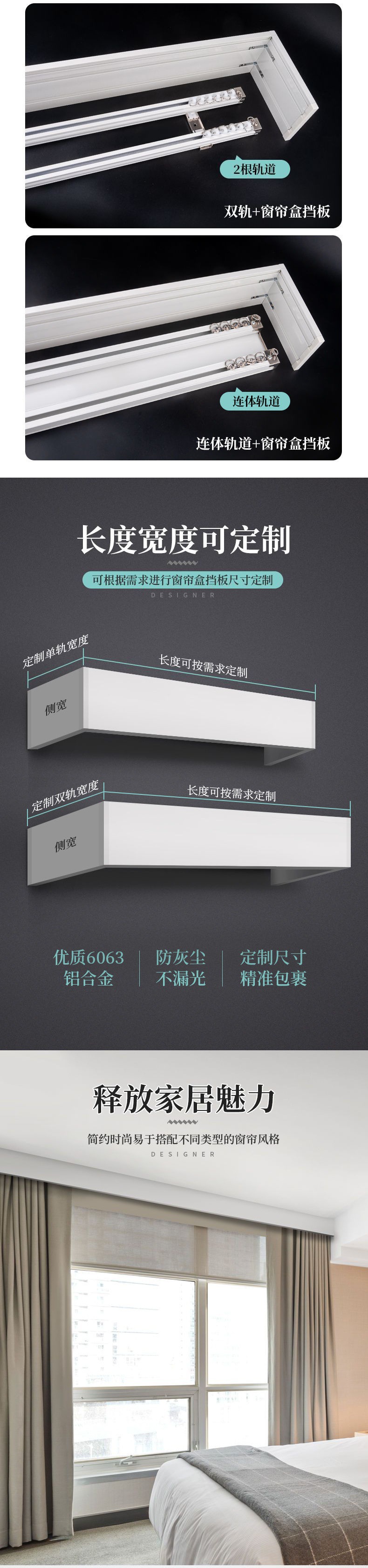완성된 커튼 박스 베젤 장식 일체형 알루미늄 합금 베젤 트랙 박스 완성 더블 트랙 상단 장착 측면 장착