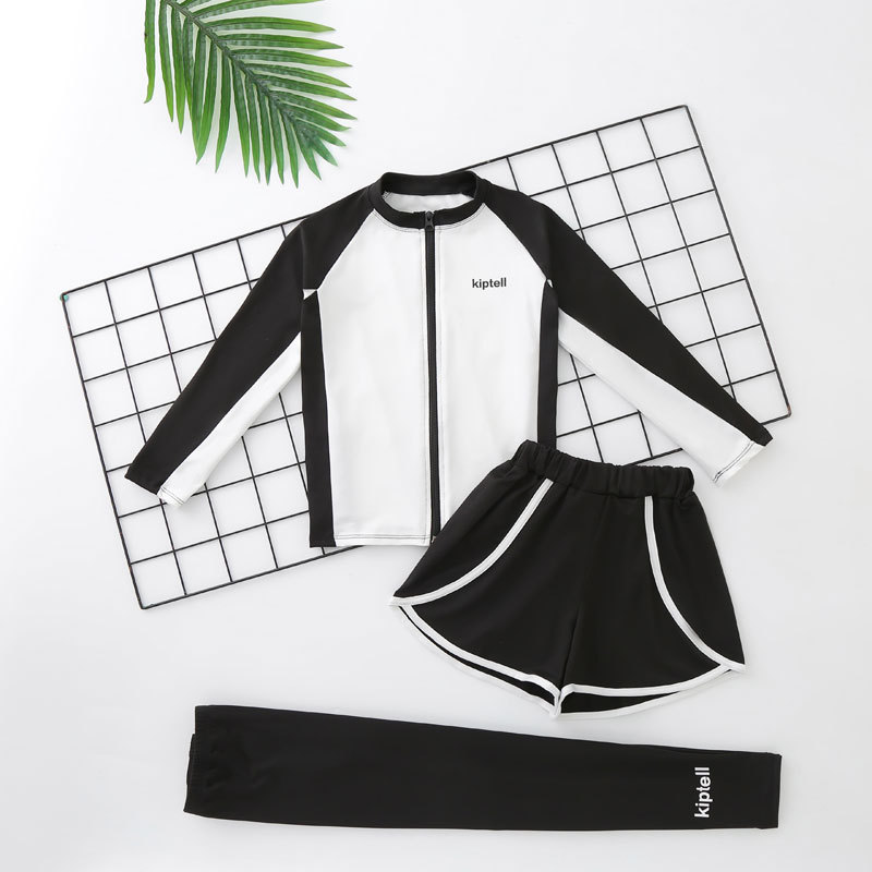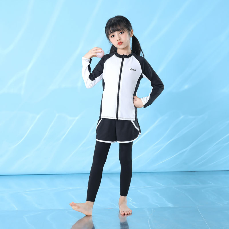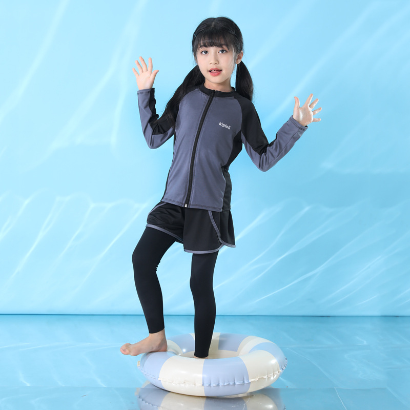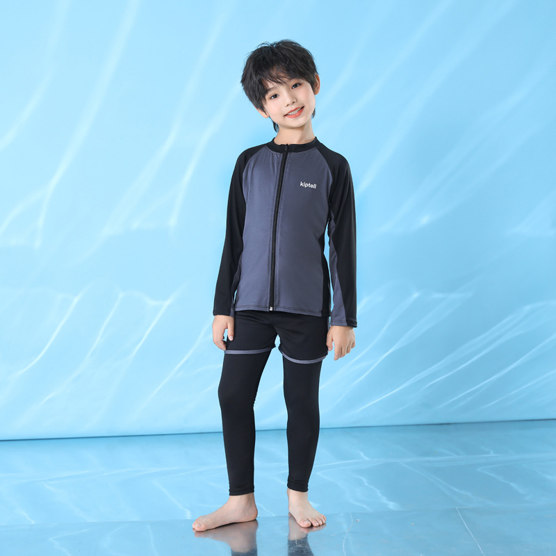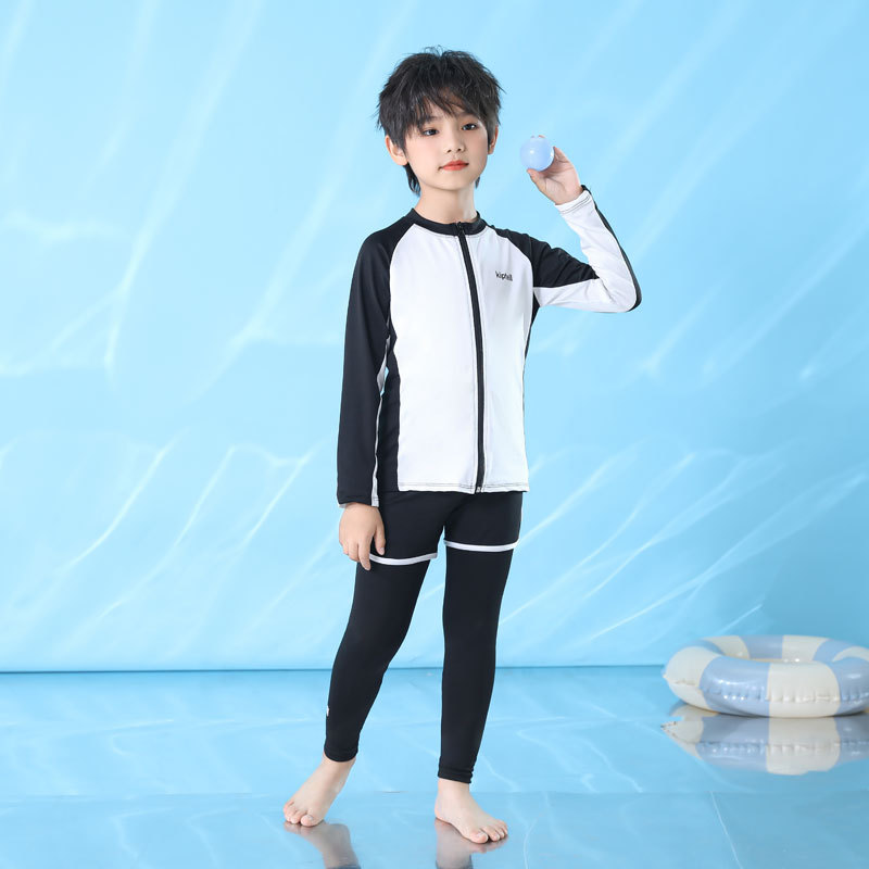 어린이 수영복 남성과 여성 및 큰 어린이를위한 긴 소매 바지 자외선 차단제 수영복 분할 서퍼 세트 부모-자식 지퍼 속건 잠수복