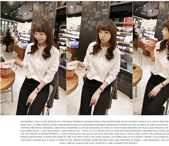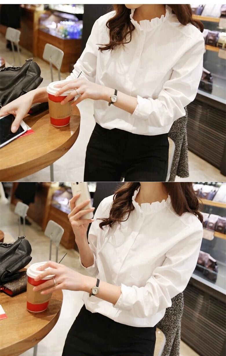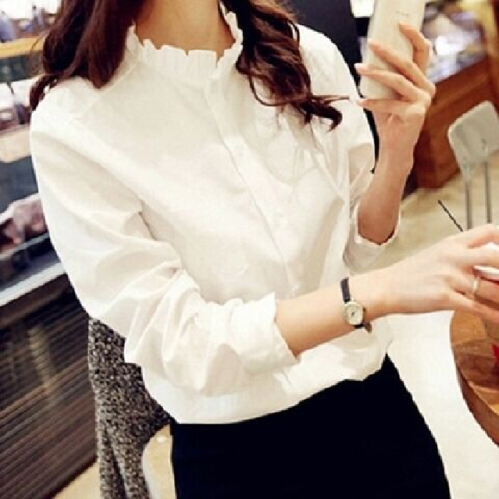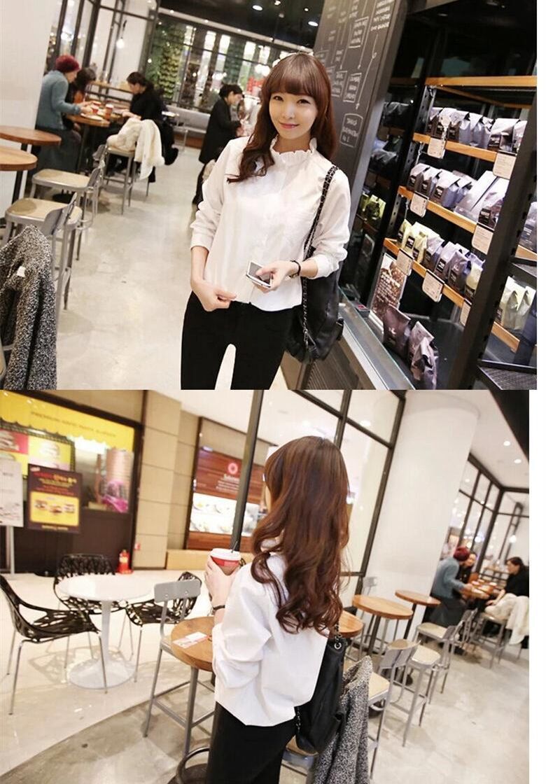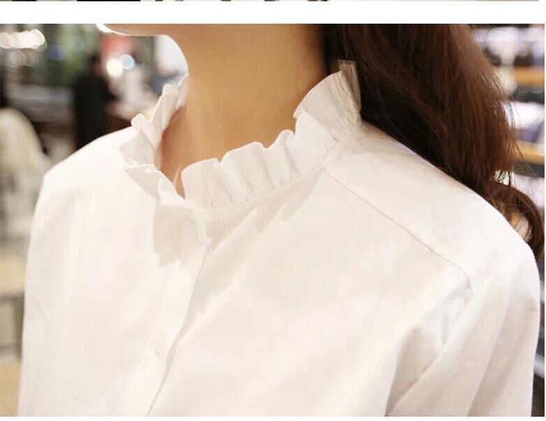 봄과 가을 새로운 화이트 레이스 칼라 블라우스 이어 칼라 작은 신선한 긴 소매 학생 여성용 셔츠 베이스 셔츠스토어 가기