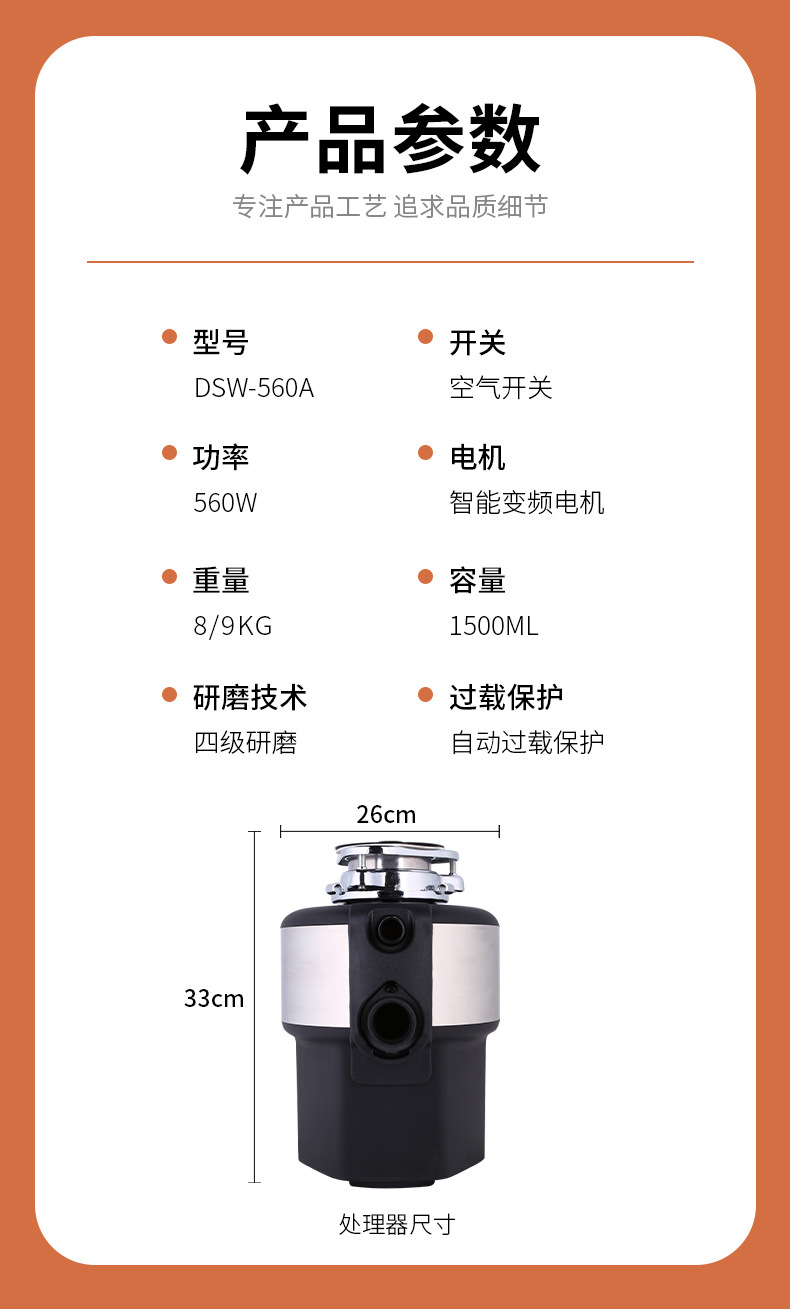 Dengshang 음식물 쓰레기 처리기 AC 모터 합금 라이너 가정용 주방 폐기물 처리스토어 가기