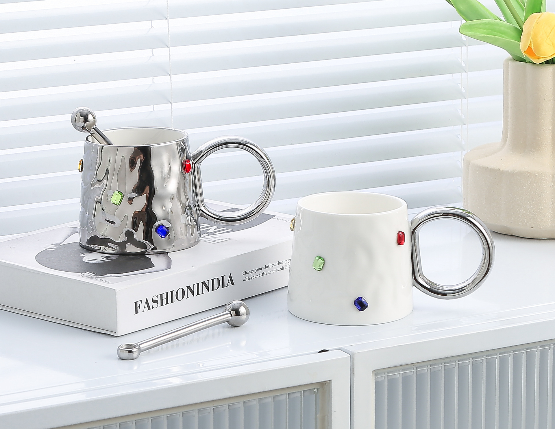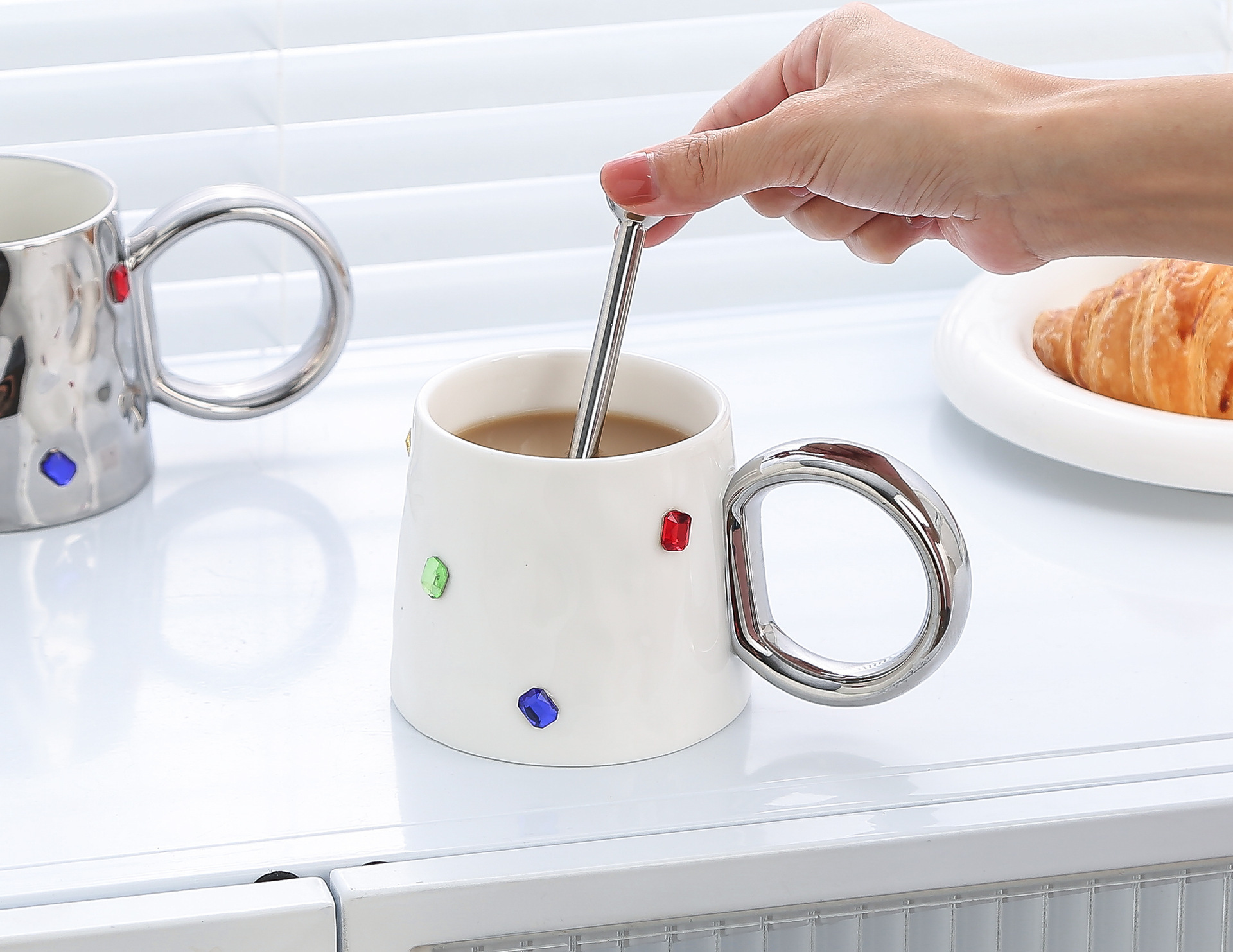 가벼운 럭셔리 고급 틈새 디자인 보석 머그 가정용 컵 세라믹 고가 오피스 커플 컵스토어 가기