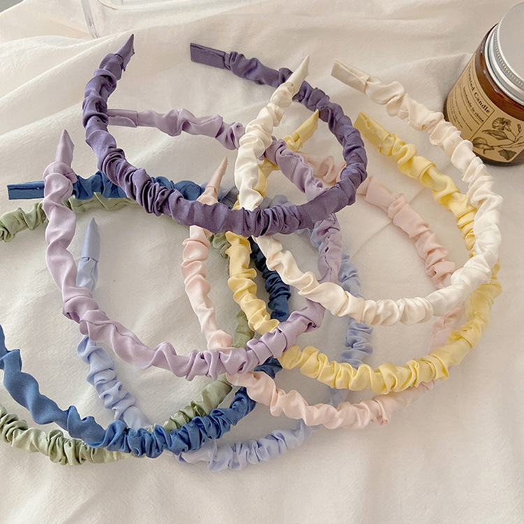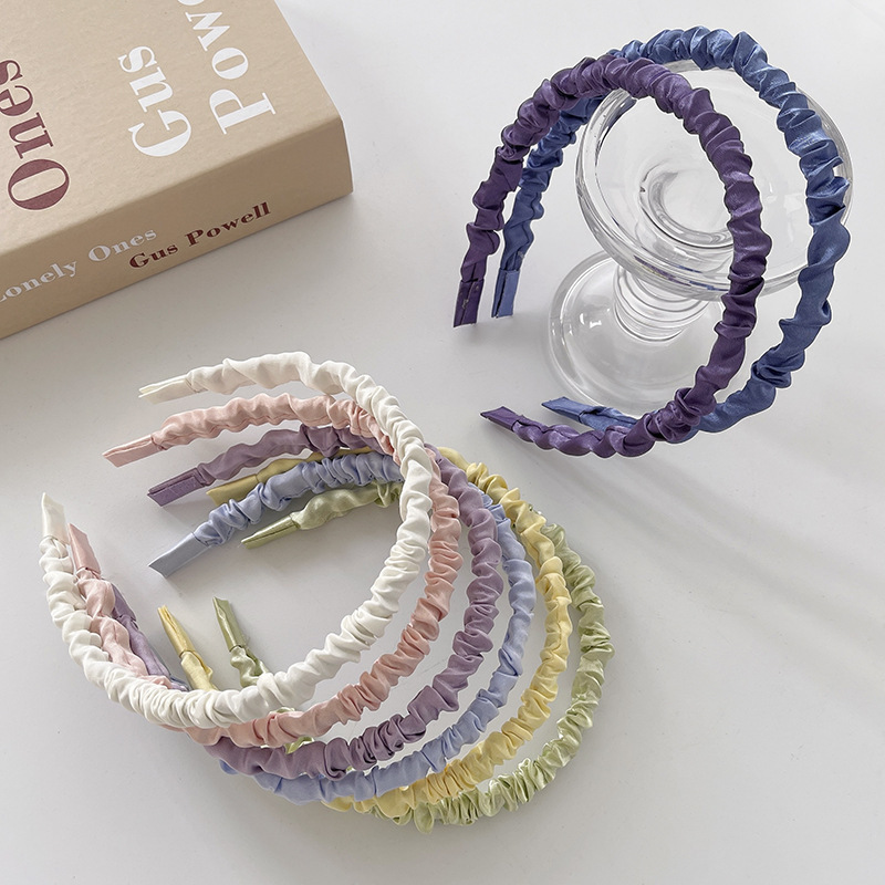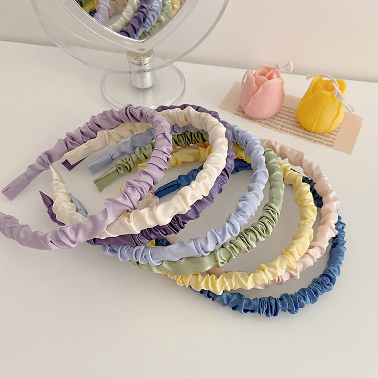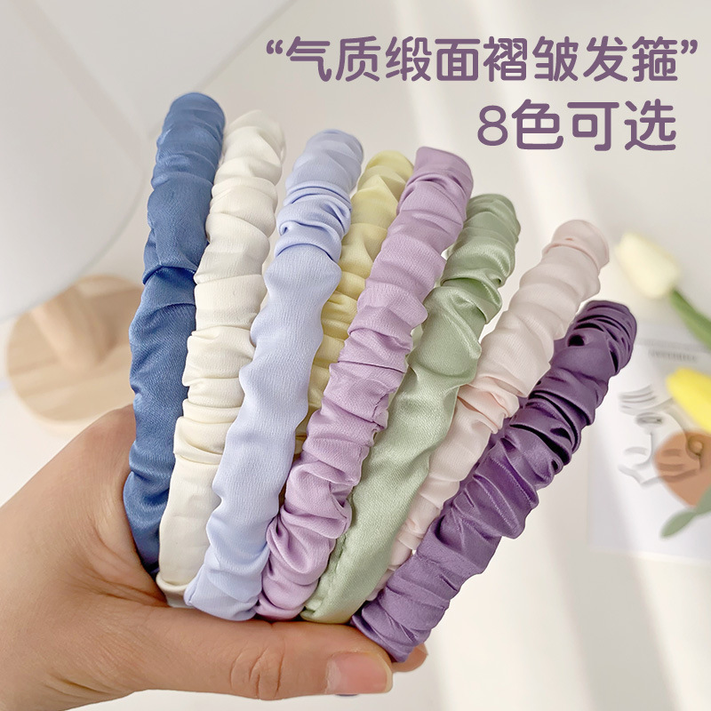 크림 색 달콤한 새틴 주름 머리띠 귀여운 조커 한국 색 간단한 머리띠 그물 빨간 머리 액세서리 도매스토어 가기