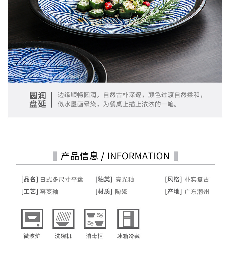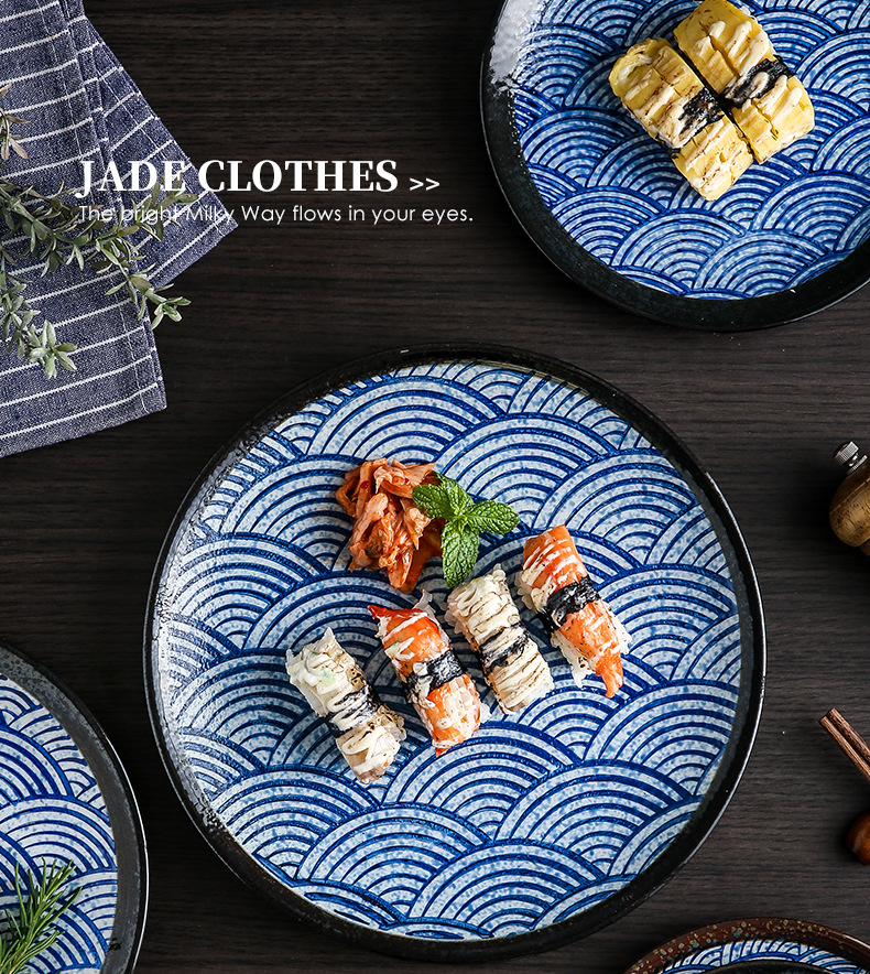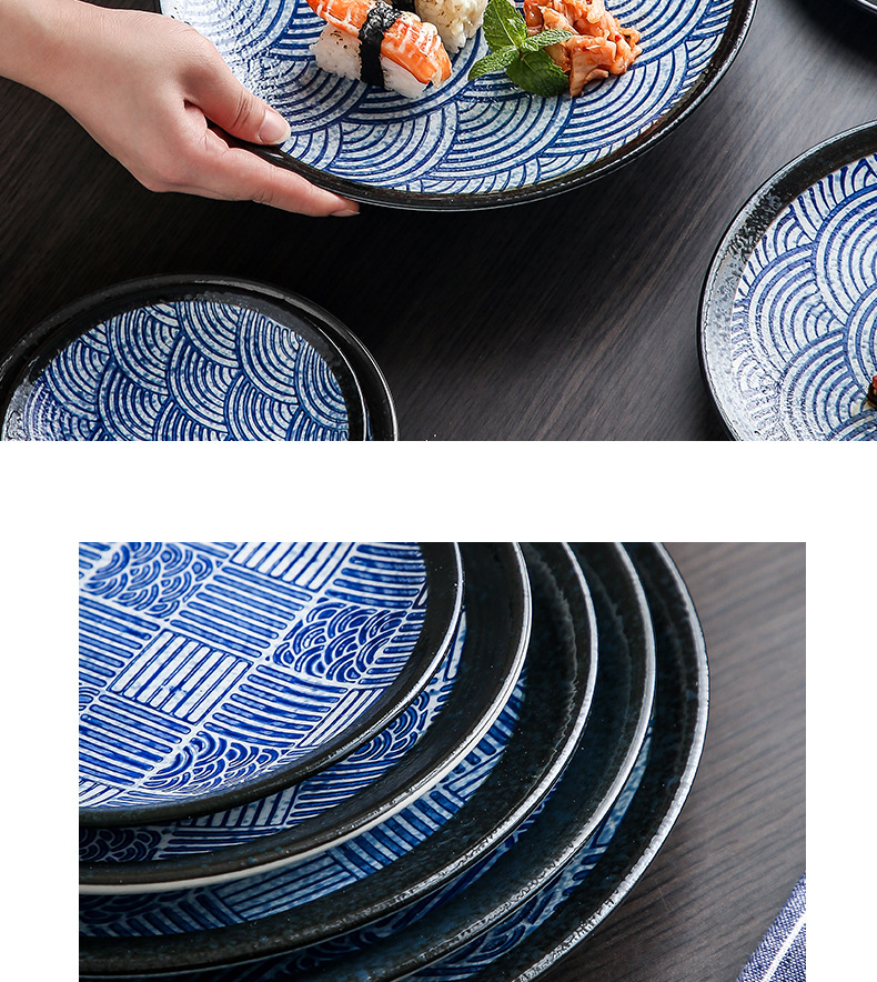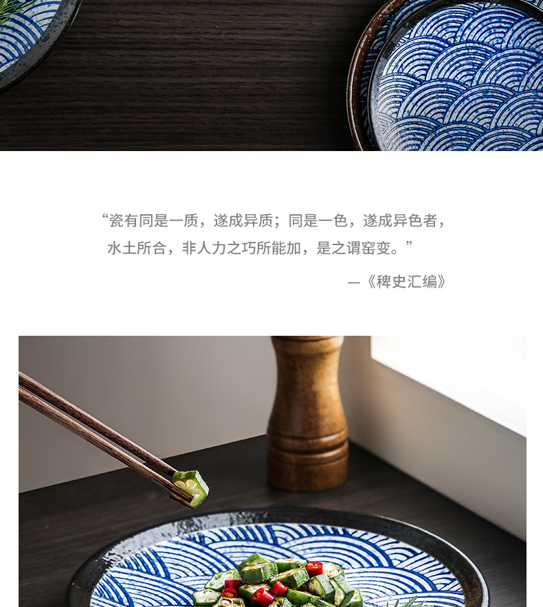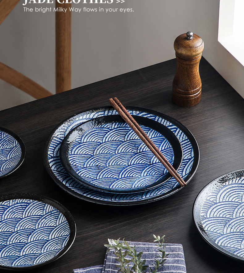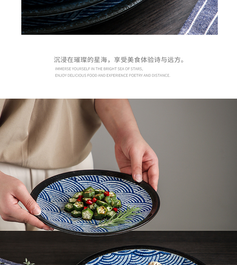 국경을 초월한 일본식 세라믹 가정용 얕은 접시 플랫 플레이트 서양식 스테이크 플레이트 도자기 접시 스파게티 플레이트 그린 골판지 식기스토어 가기