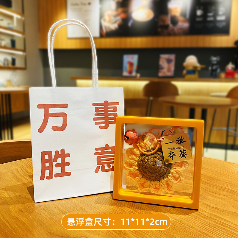 • 봉제 크로 셰 뜨개질 펜던트-해바라기 (한 번에 승리) + 오렌지 서스펜션 상자 + 선물 가방