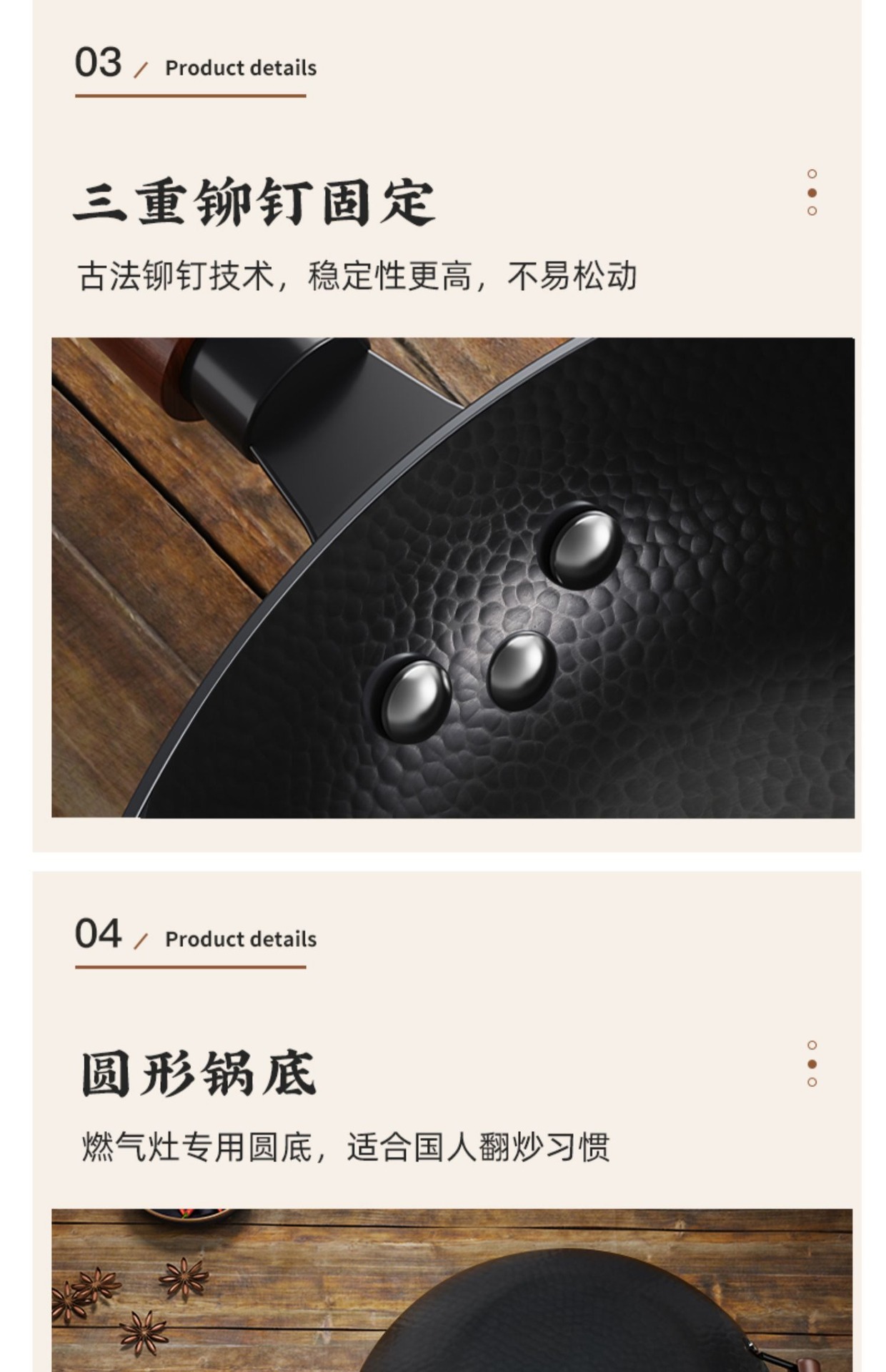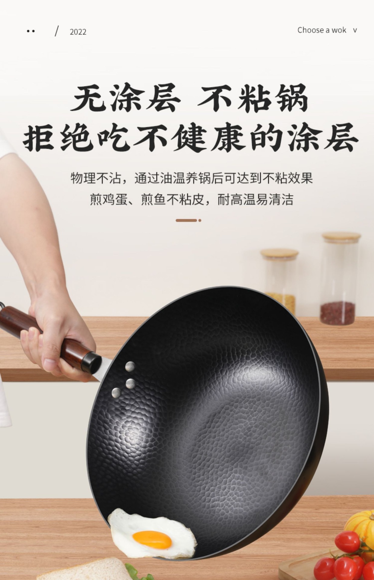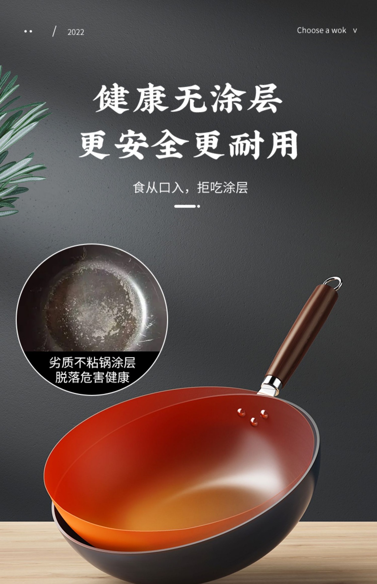店铺所有上架的铁锅都是100%无涂层铁锅,含铁量达99% 。