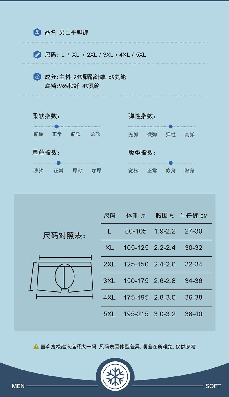 남성용 사각팬티 통기성 반바지 남성용 대형 사이즈 팬티 남성용 아이스 실크 순면 사각 팬티