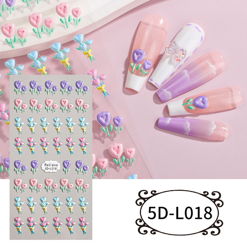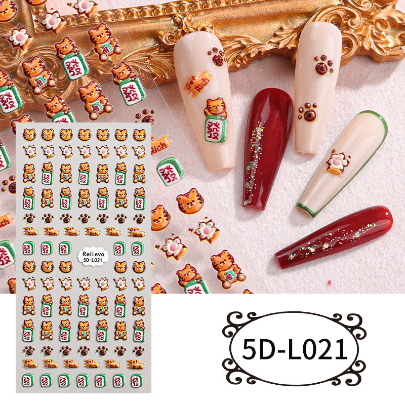 Zhengxiang 네일 스티커 도매 사용자 정의 DIY 구호 5D 네일 스티커 귀여운 작은 동물 INS 바람 꽃 네일 스티커스토어 가기