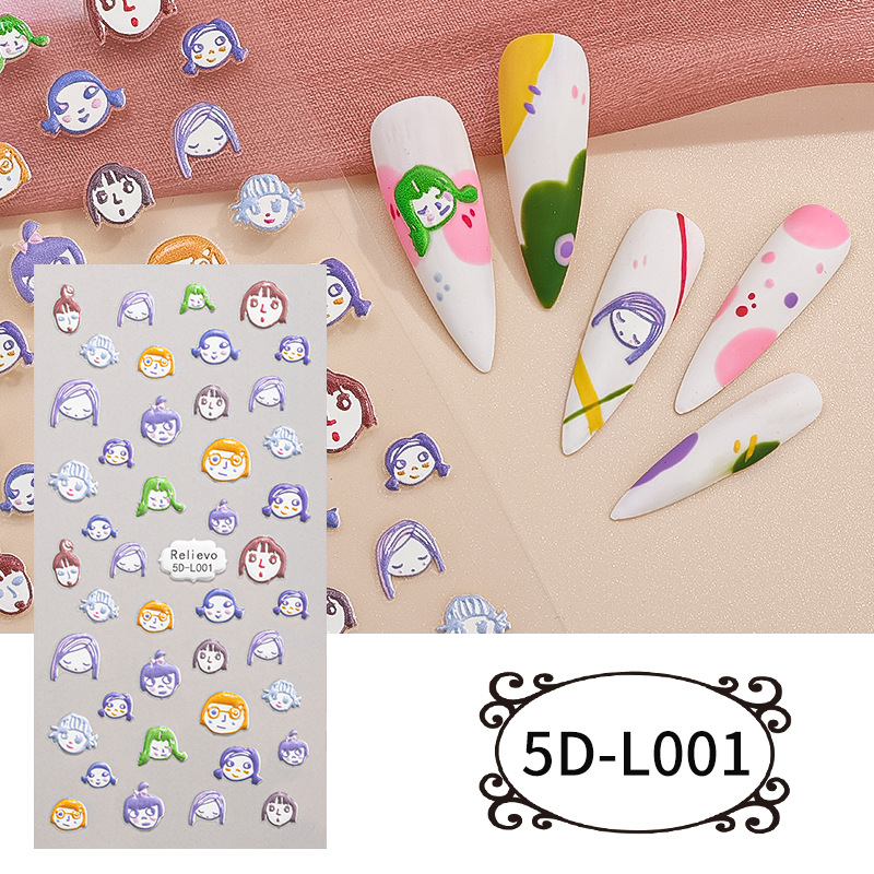 Zhengxiang 네일 스티커 도매 사용자 정의 DIY 구호 5D 네일 스티커 귀여운 작은 동물 INS 바람 꽃 네일 스티커