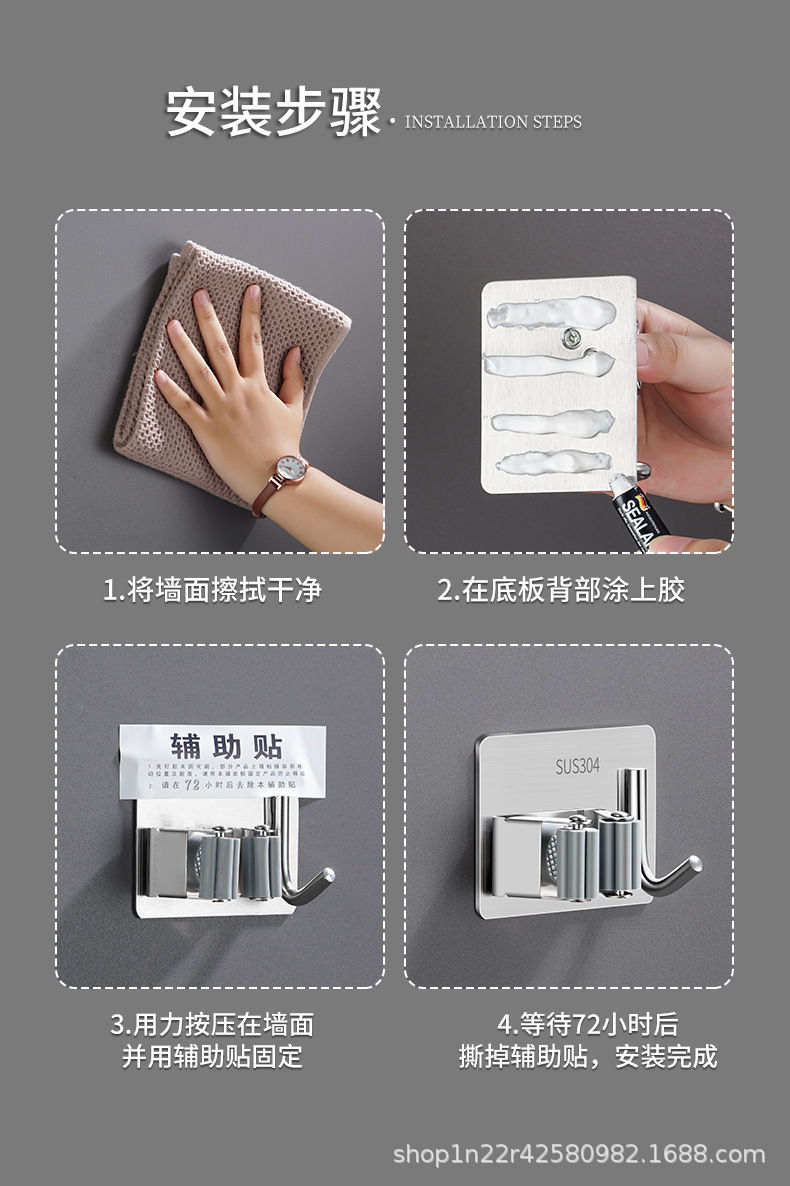 • 201 스테인리스 스틸 [후크가 넉넉한 회색] 접착제 부착