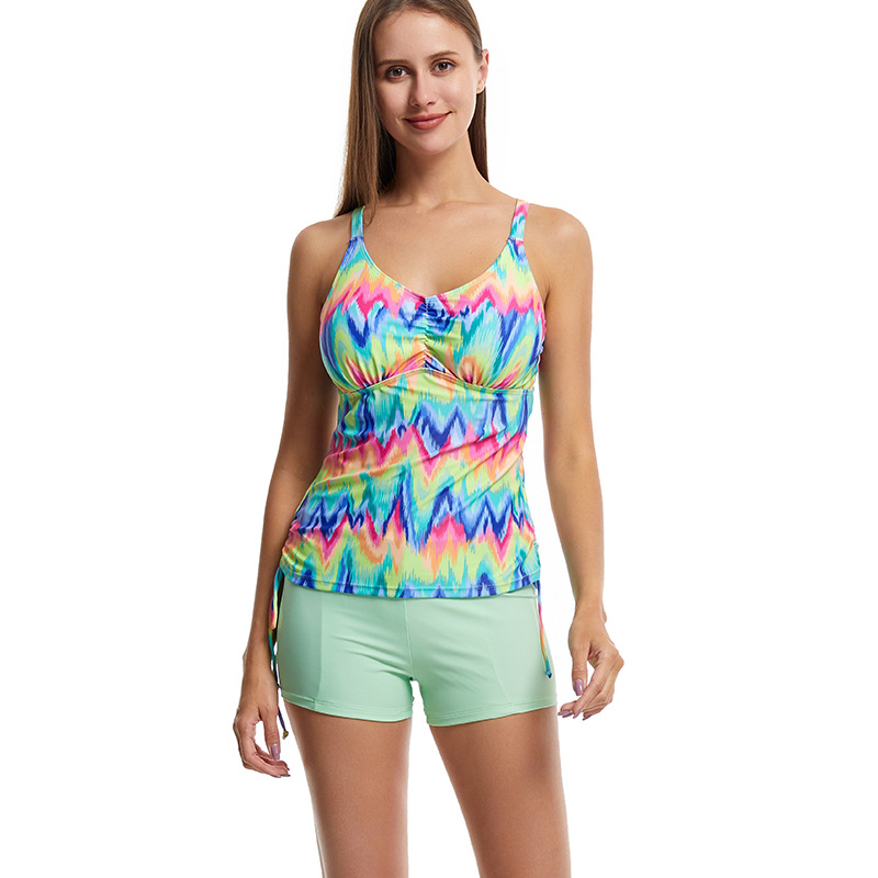 2023 크로스 보더 새로운 스플릿 수영복 유럽과 미국 플러스 사이즈 배꼽 커버 슬림 핏 프린트 투피스 복서 타키니 수영복스토어 가기