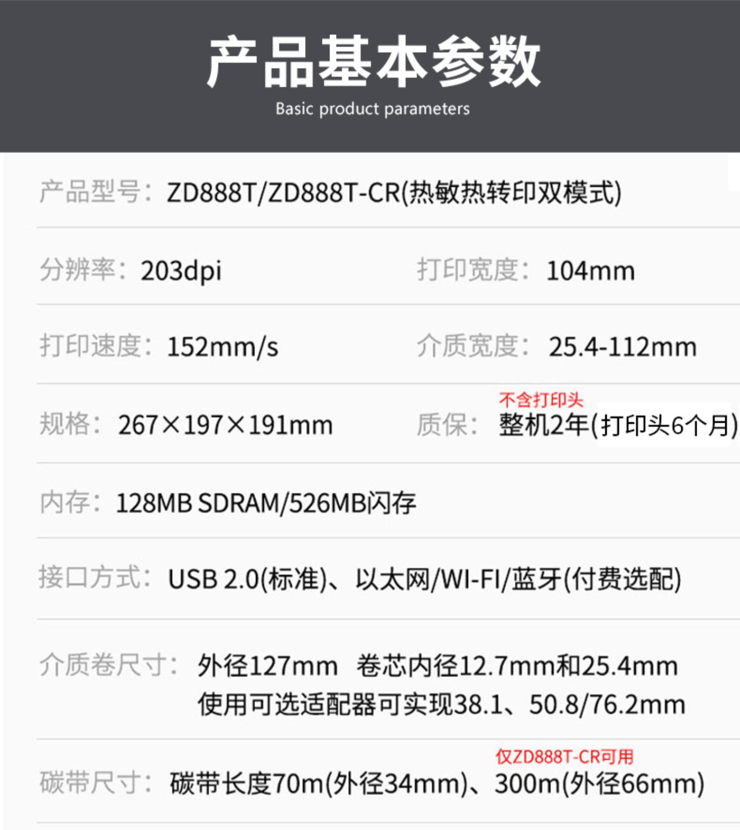 • 새로운 ZD888TA(203dpi, USB 인터페이스)