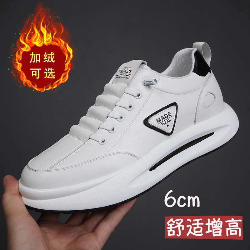 슬립 온 높이 증가 남성 신발 2024 가을 및 겨울 새로운 스타일 내부 높이 증가 기모 화이트 신발 남성 올 매치 스포츠 캐주얼 신발 트렌디스토어 가기