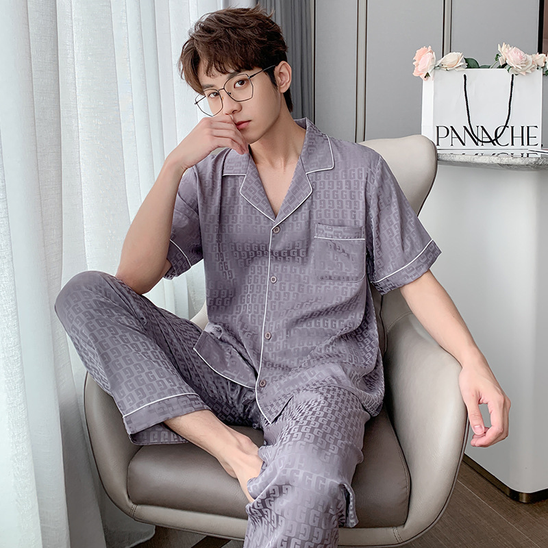 잠옷 남자의 여름 아이스 실크 반팔 바지 남자의 고급 감각 얇은 봄과 가을 플러스 사이즈 가정 옷 세트 여름스토어 가기