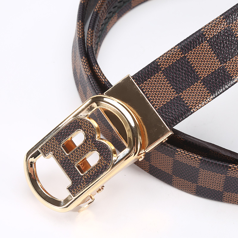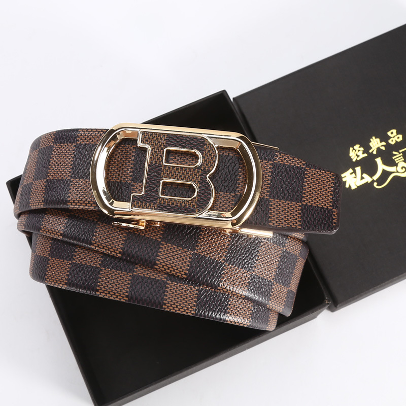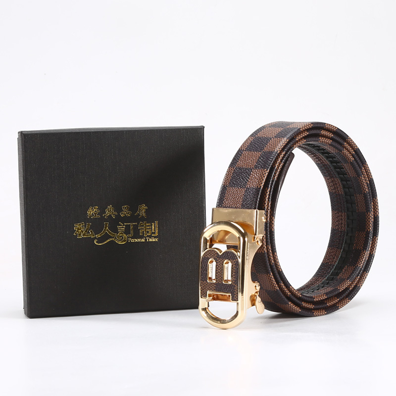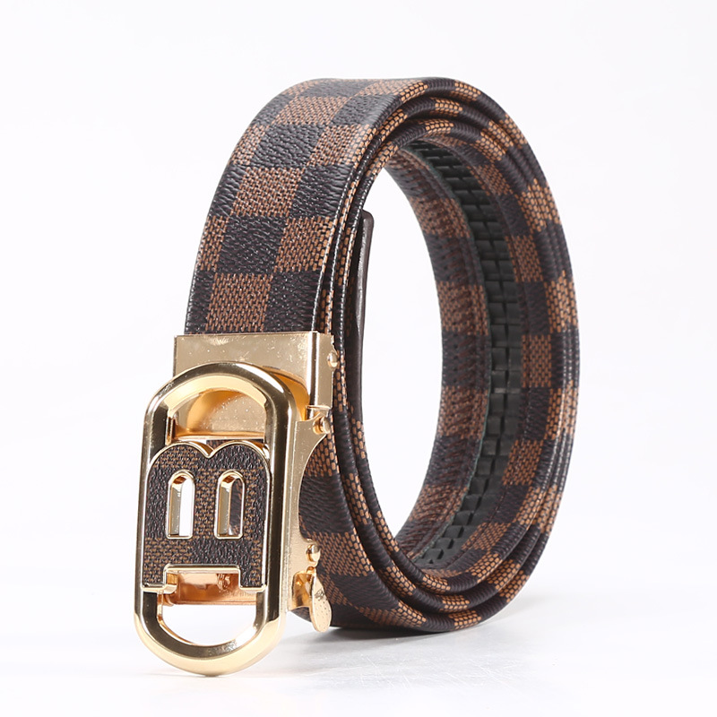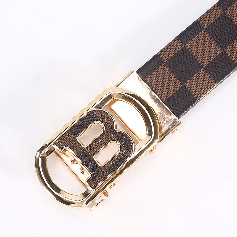 새로운 편지 버클 벨트 남성용 자동 버클 캐주얼 비즈니스 벨트 바둑판 모조 가죽 남성용 바지 제조 업체 도매스토어 가기