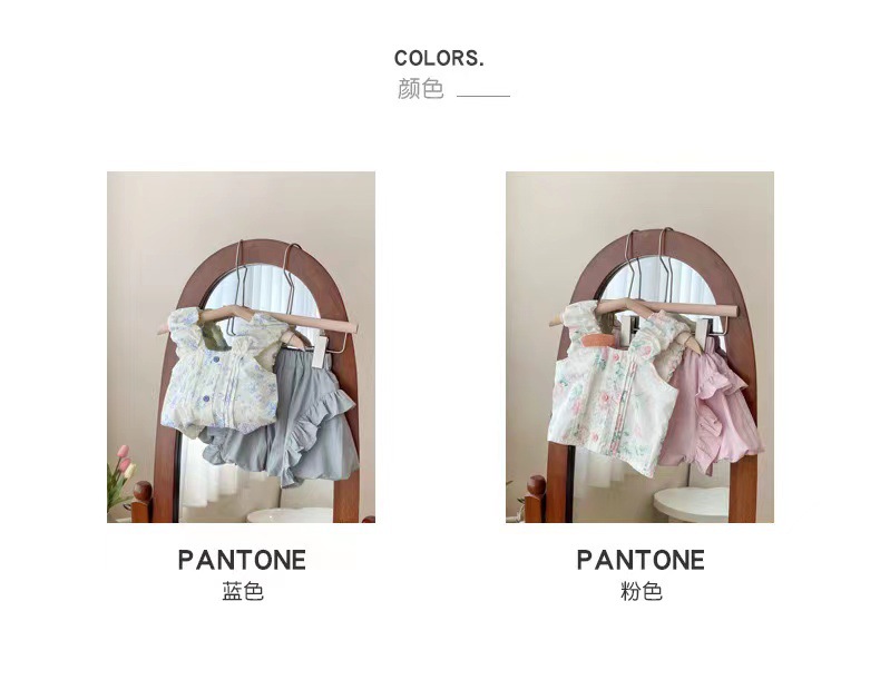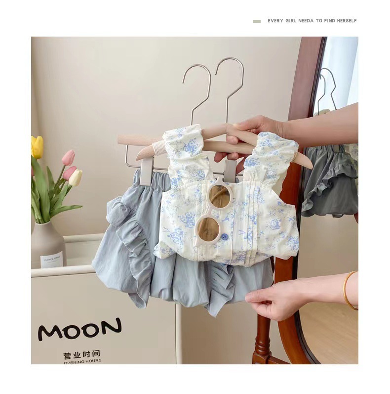여아 여름 세트 한국 스타일 작은 어린이 서양 스타일 꽃무늬 셔츠 여자 아기 여름 투피스 세트스토어 가기