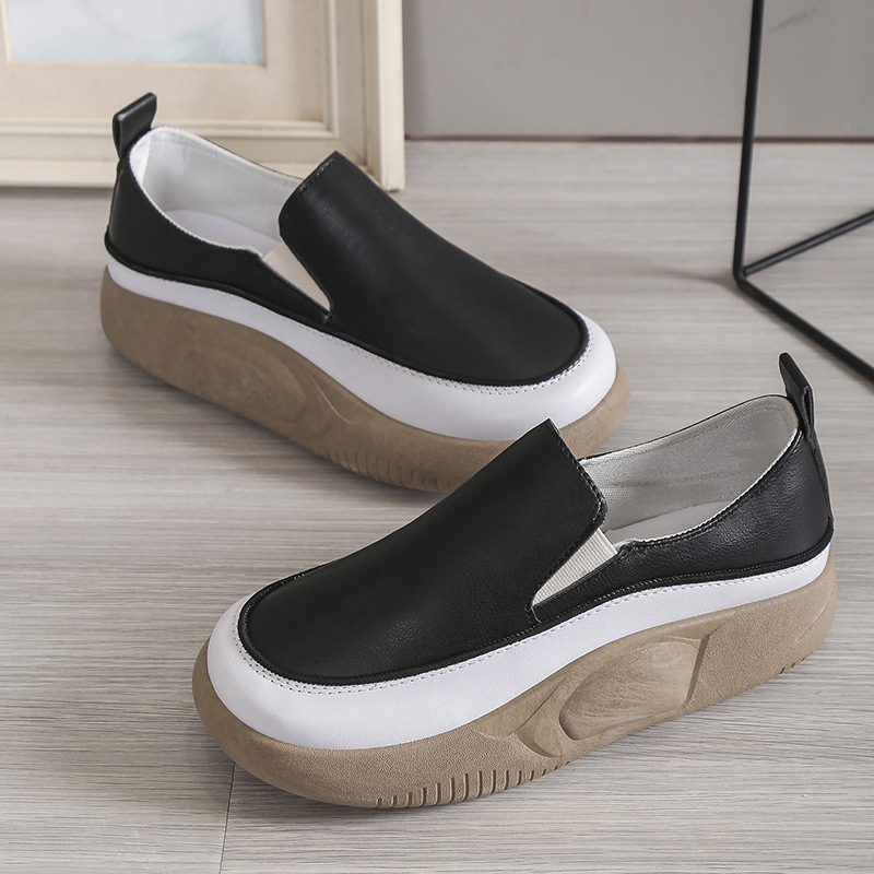 시즌 2023 새로운 라운드 토 로퍼 여성용 봄과 여름 복고풍 신발 유행 두꺼운 단독 머핀 얕은 입 슬립온 신발 트렌디스토어 가기