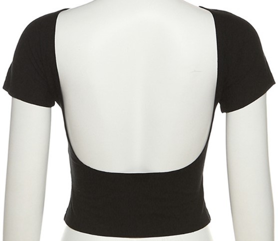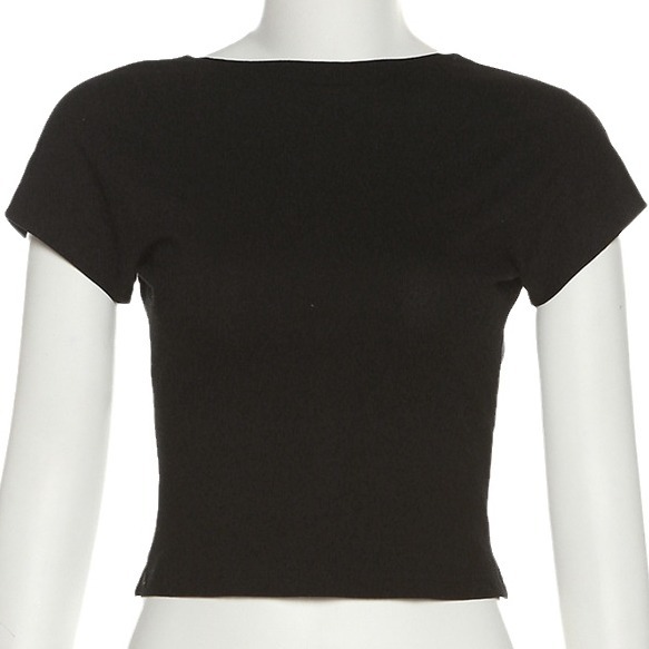 [재고 스트레이트 헤어] 아마존 신제품 여성 티셔츠 여름 의류 가을 신제품 원라인 칼라 백리스 나이트클럽 탑