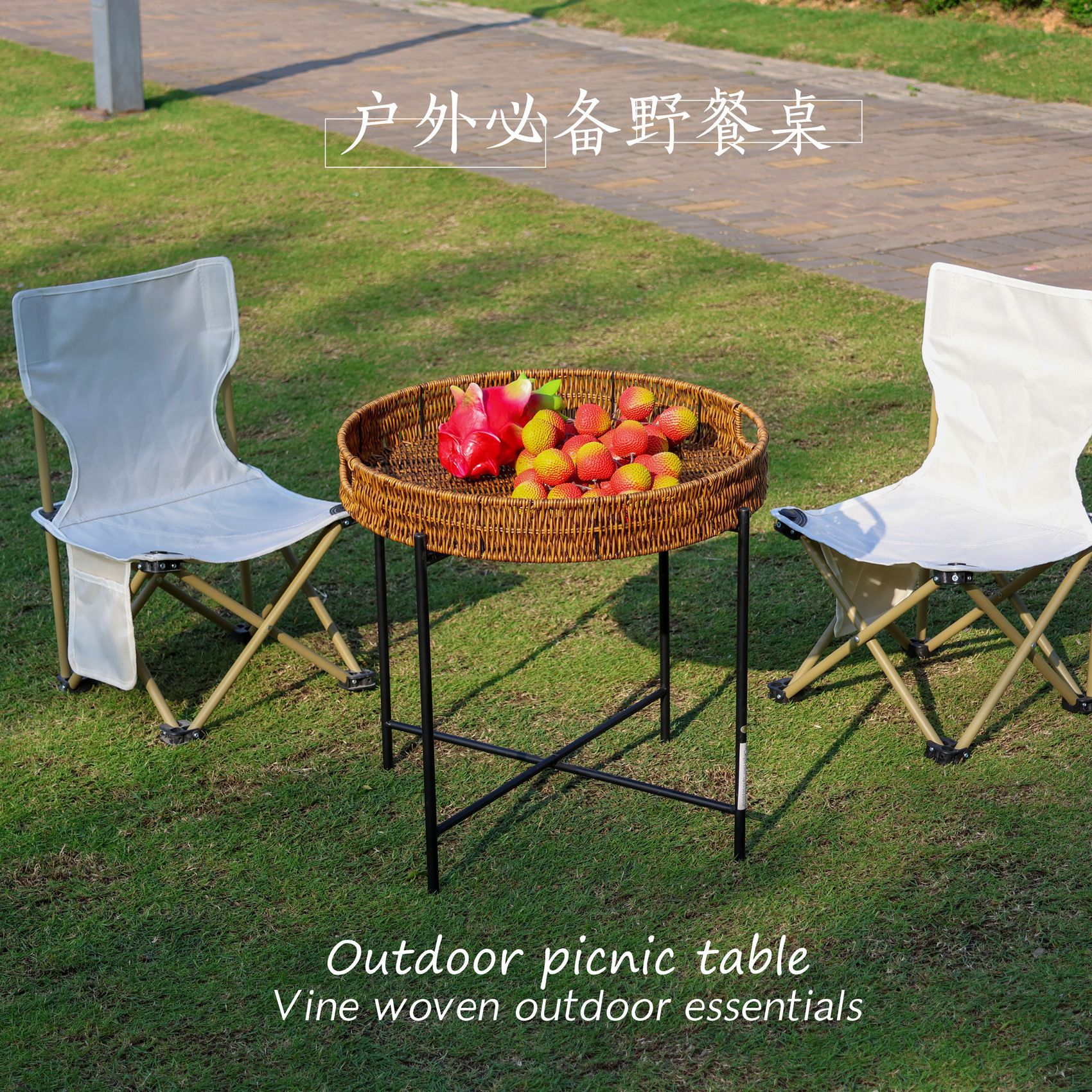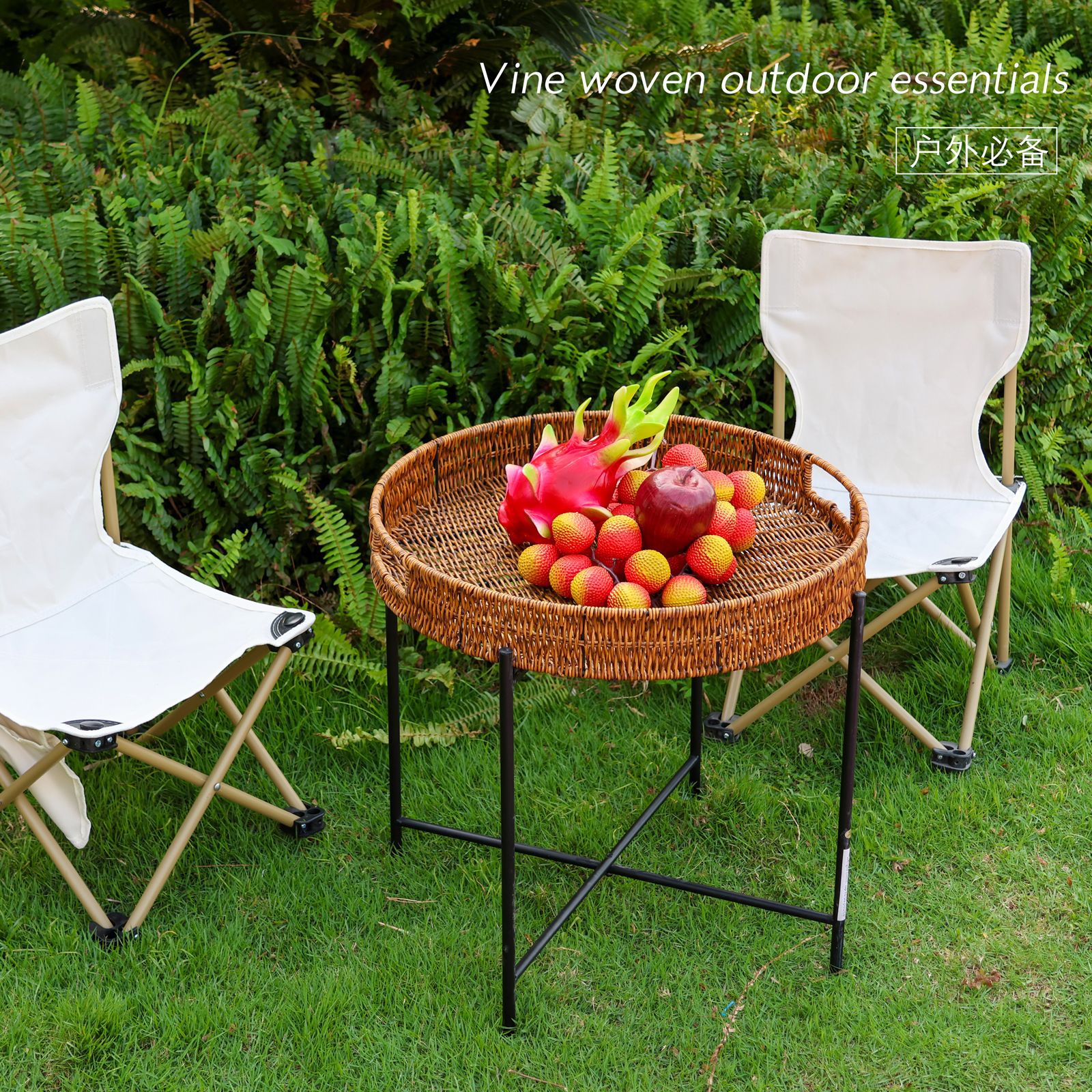 야외 피크닉 테이블 휴대용 접이식 모조 등나무 테이블 요리 차 테이블 안뜰 정원 테이블 작은 커피 테이블 캠핑 테이블
