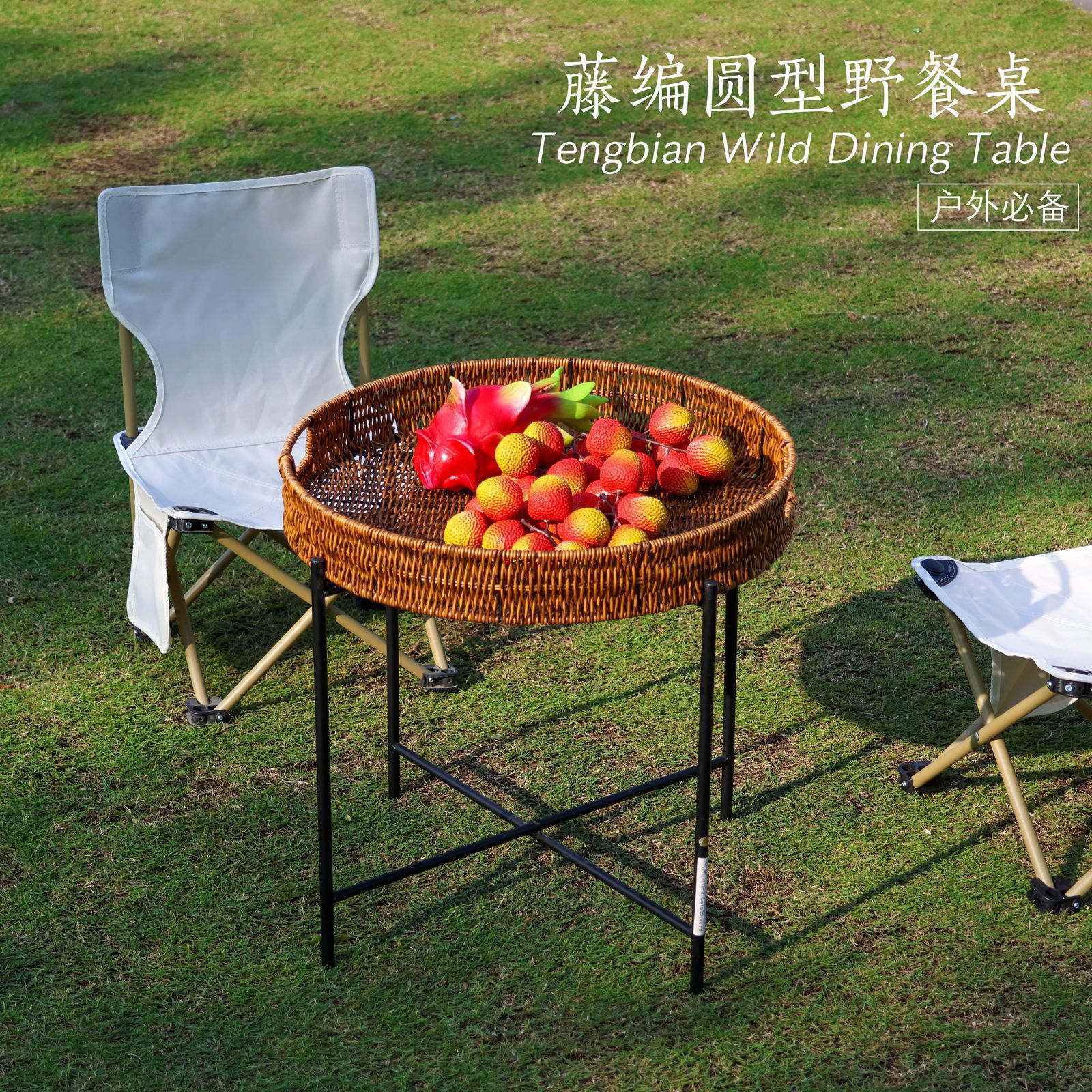 야외 피크닉 테이블 휴대용 접이식 모조 등나무 테이블 요리 차 테이블 안뜰 정원 테이블 작은 커피 테이블 캠핑 테이블스토어 가기