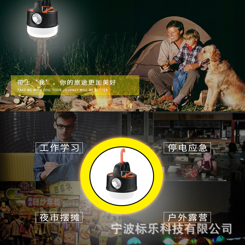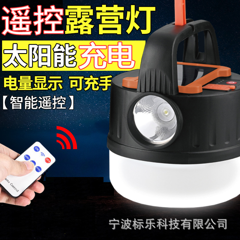 새로운 태양열 충전 캠핑 램프 야외 야시장 후크 조명 다기능 원격 제어 휴대용 텐트 램프스토어 가기