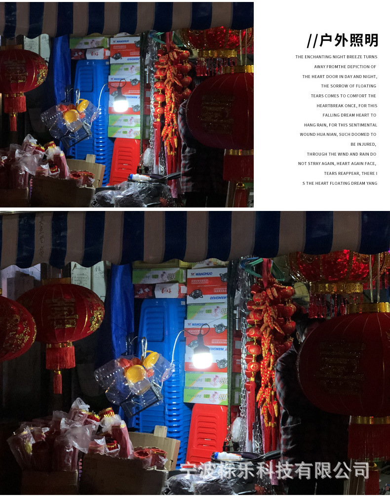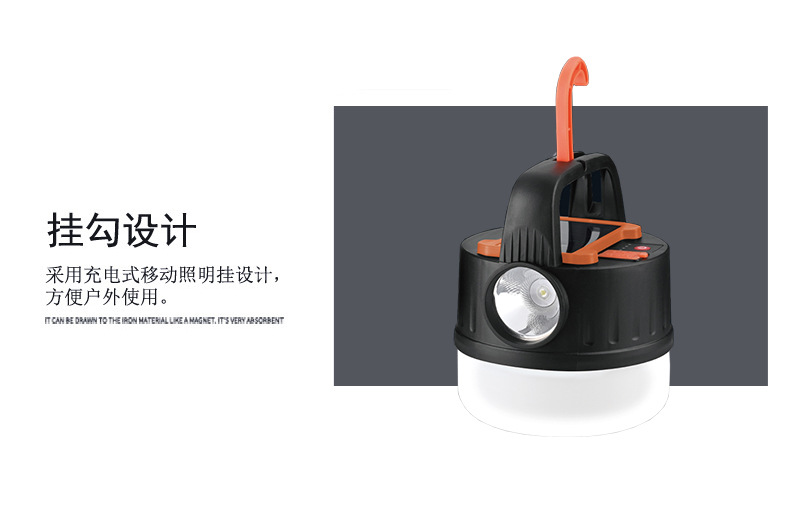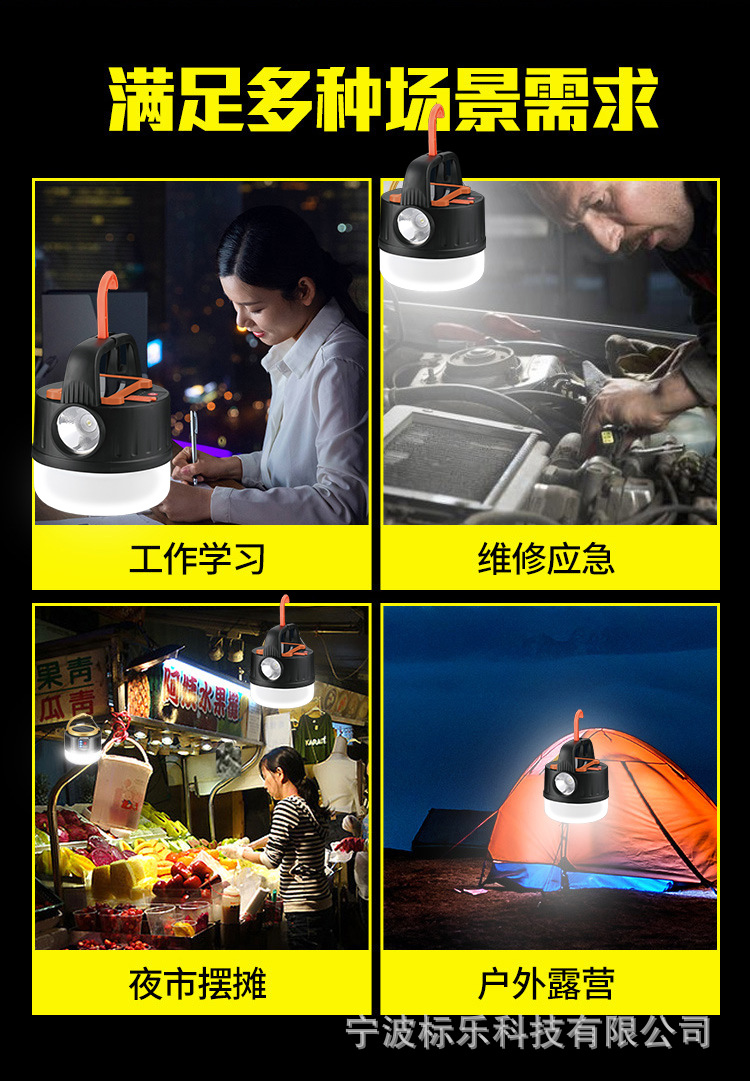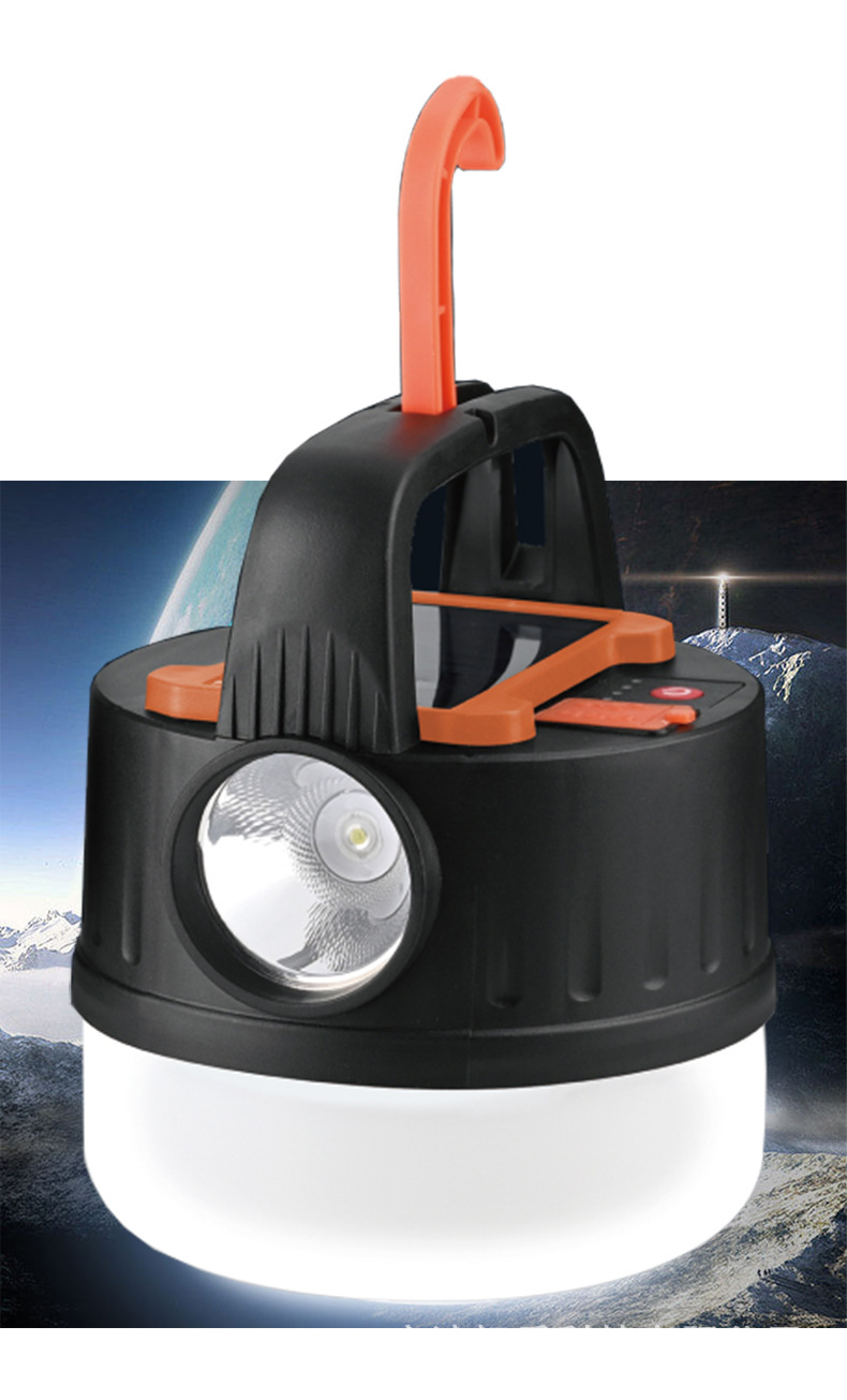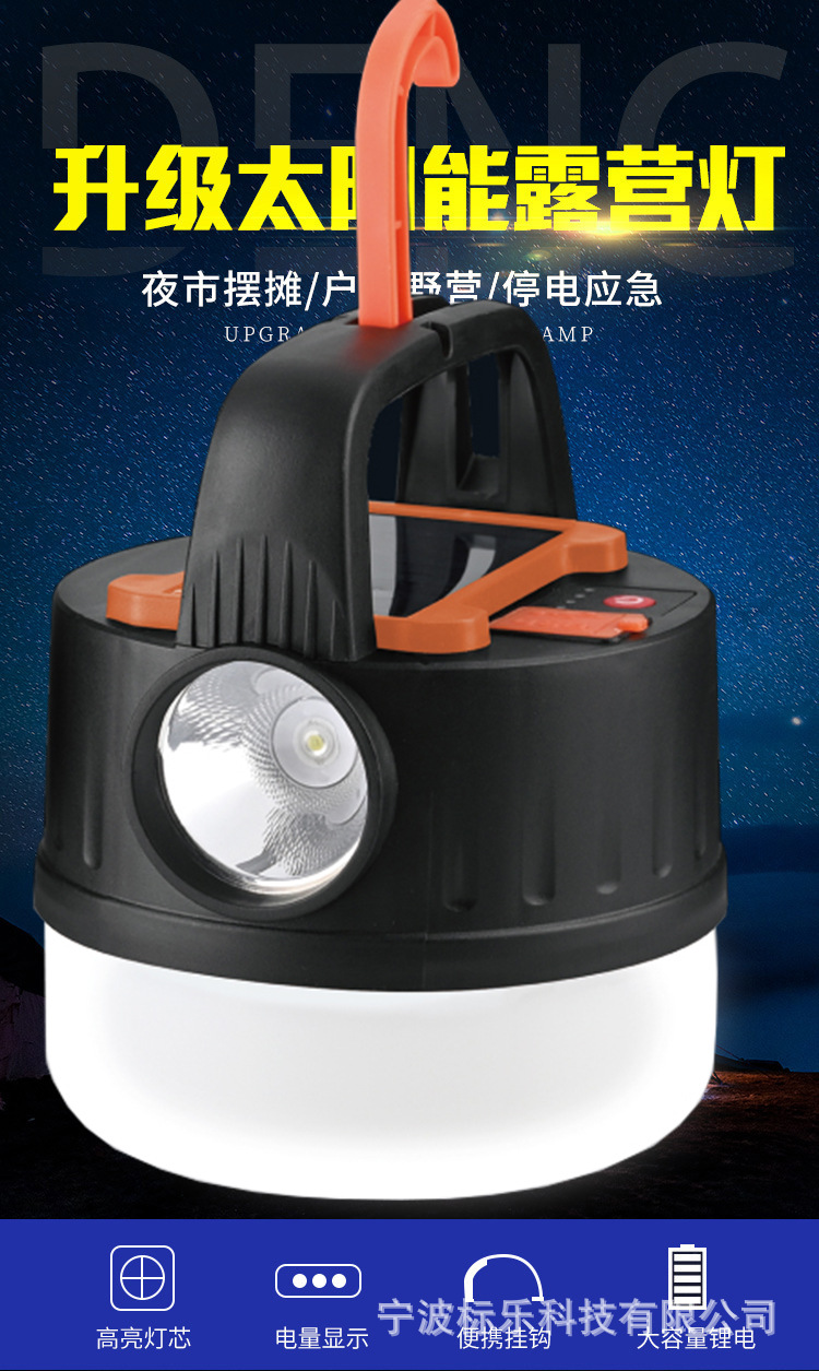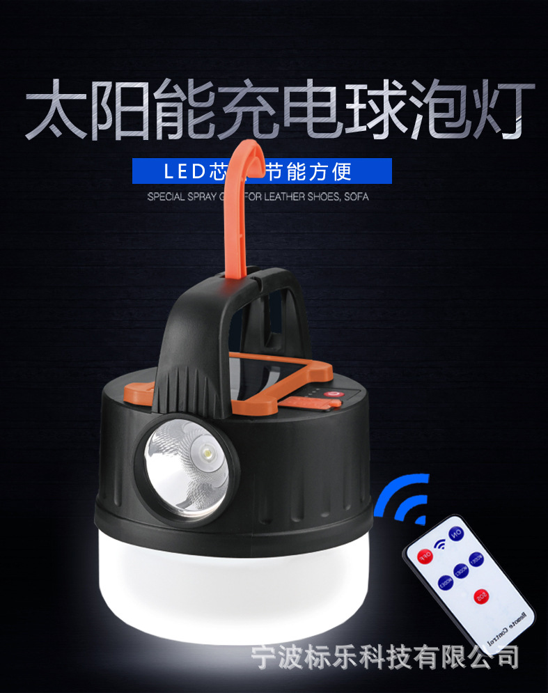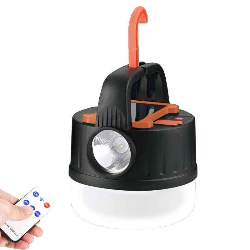 새로운 태양열 충전 캠핑 램프 야외 야시장 후크 조명 다기능 원격 제어 휴대용 텐트 램프