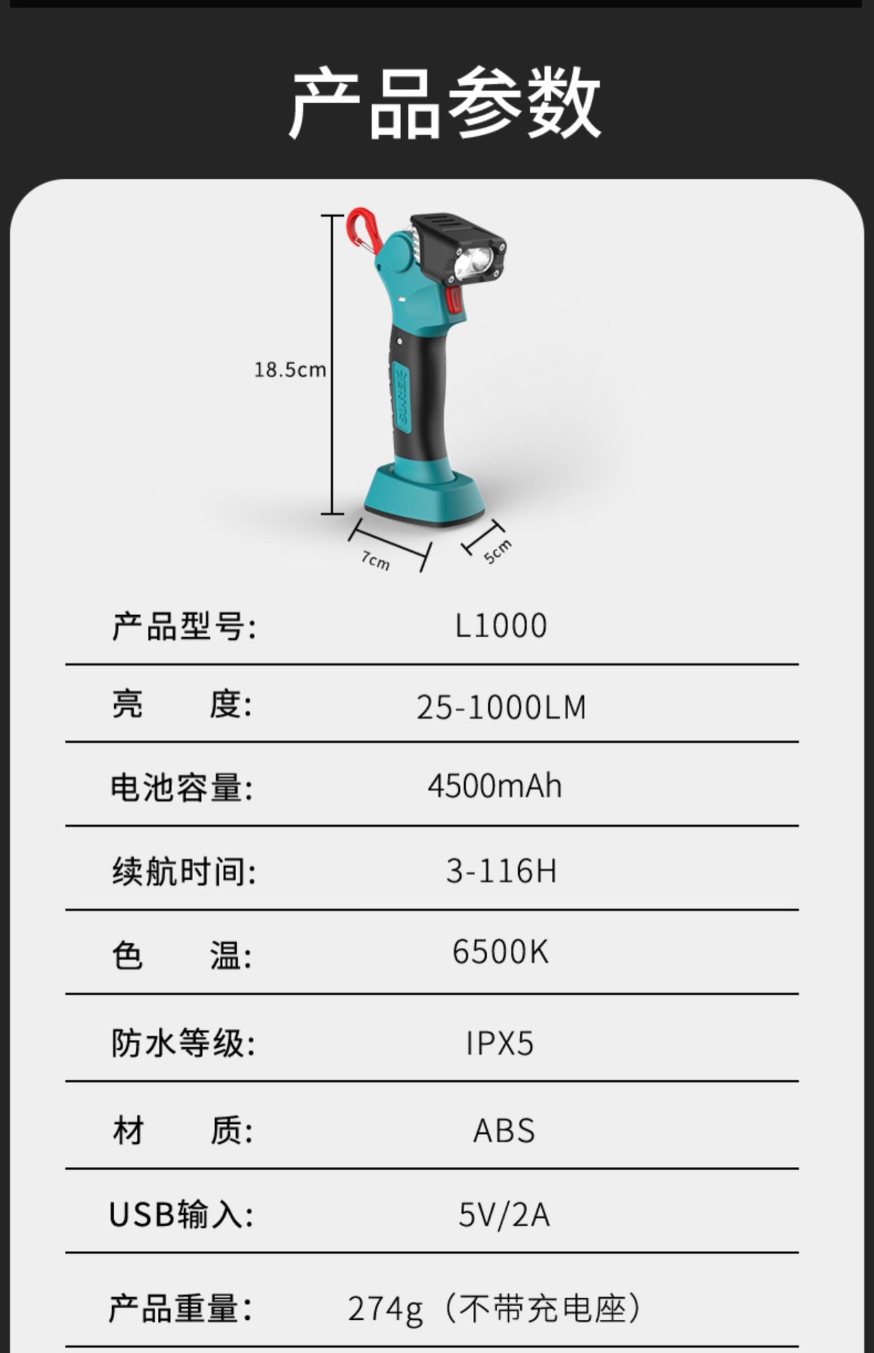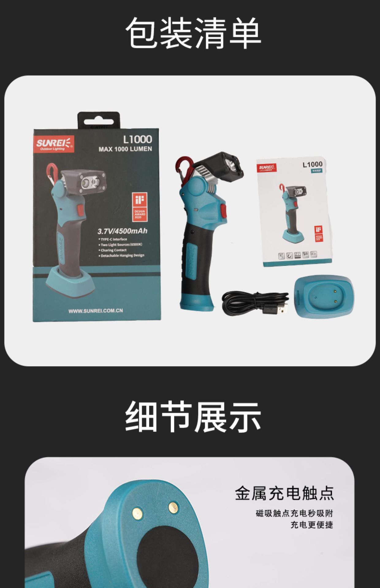 Sunrei Shanlix L1000 핸드 헬드 손전등 휴대용 모바일 자기 유지 보수 작업등