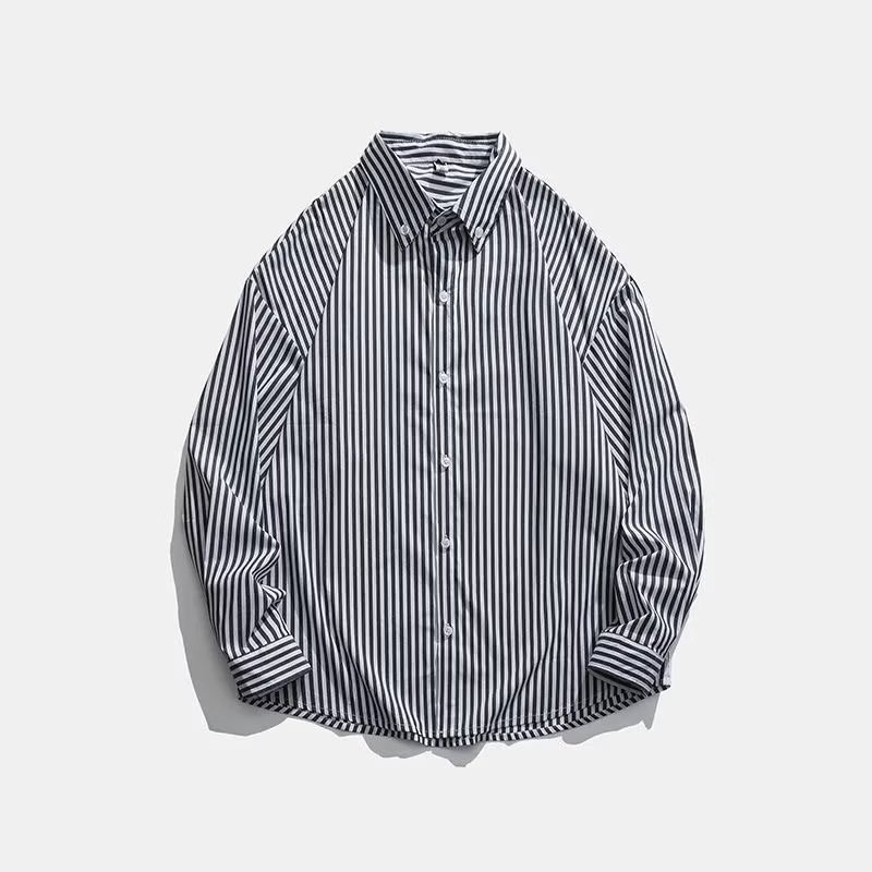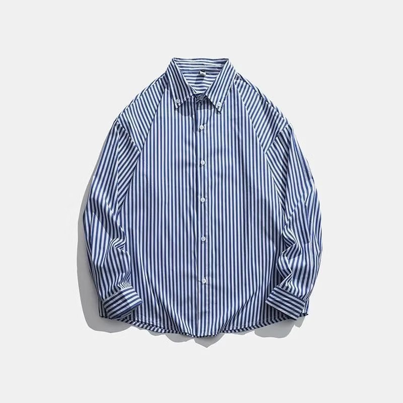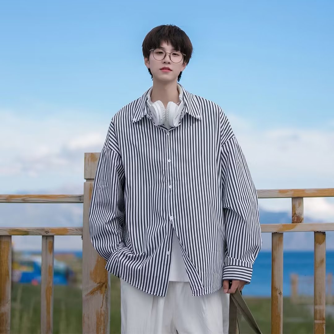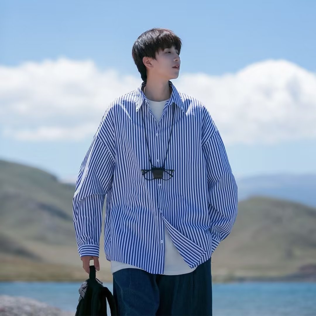긴팔 청소년 인기 남성 심플 조수 게으른 기질 새로운 패션 스트라이프 표준 봄 셔츠 일본 트렌드스토어 가기