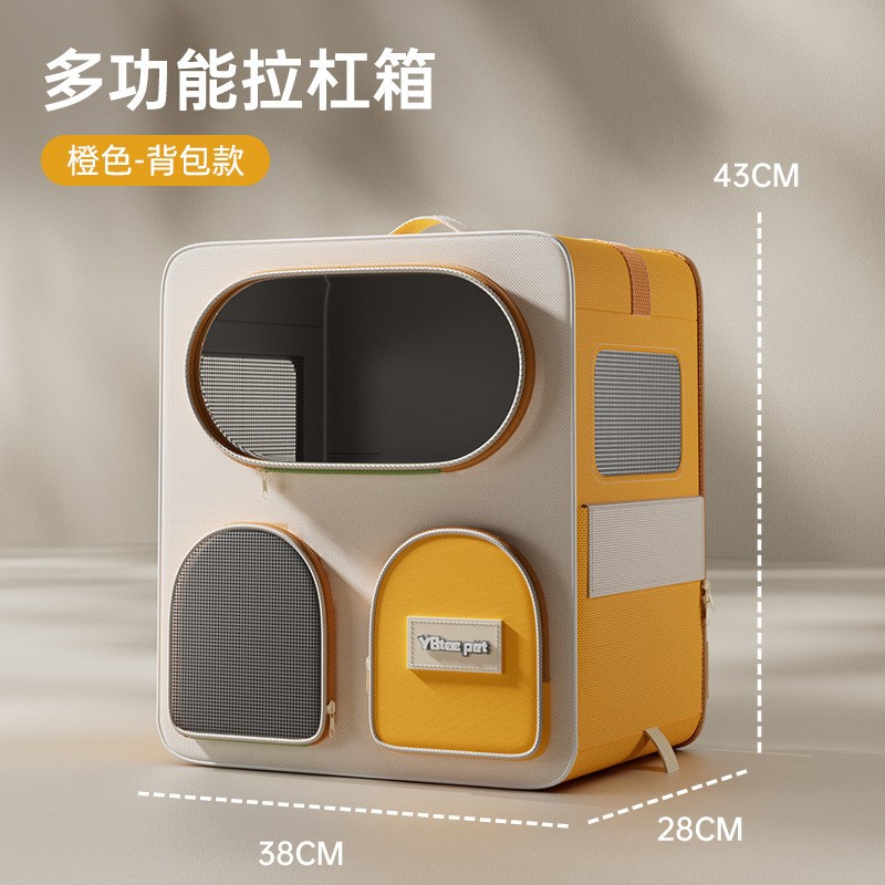 • 애견 외출용 휴대 가방, 캐리어 겸용 더블 백팩 (오렌지)