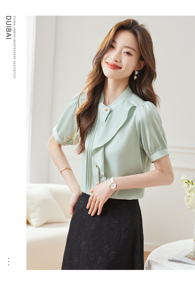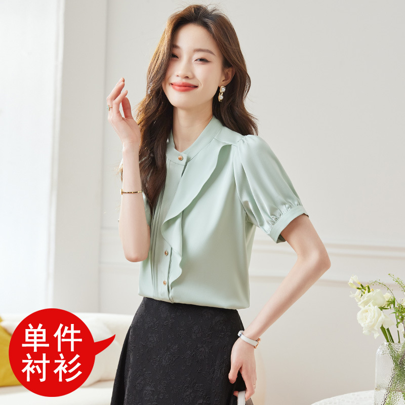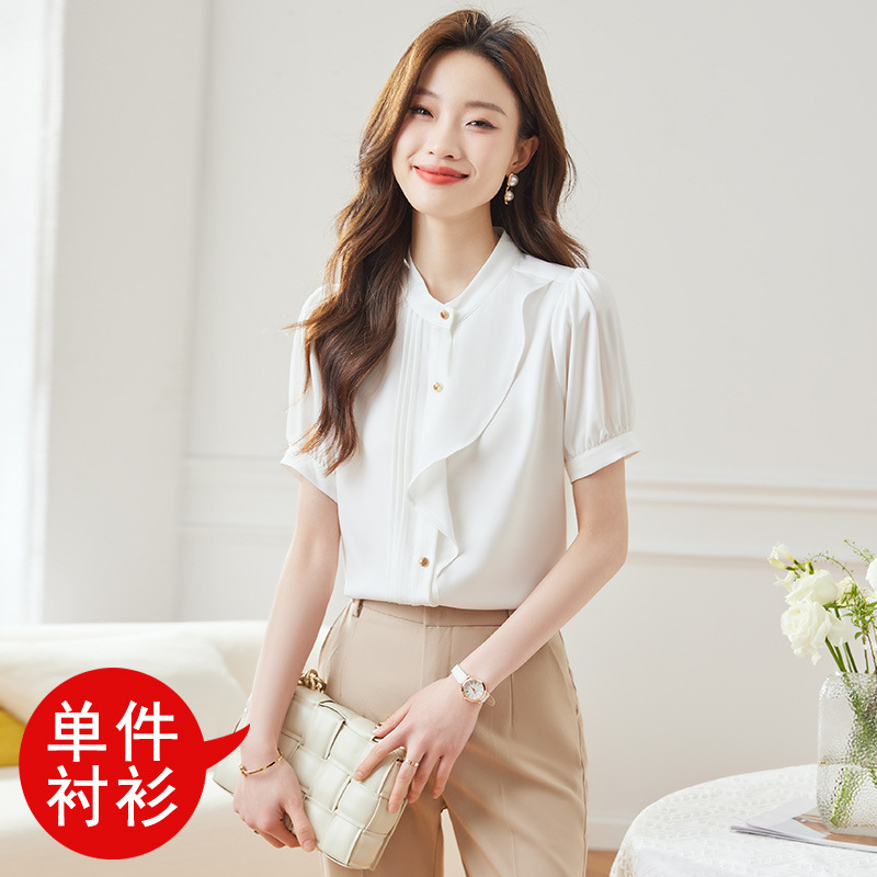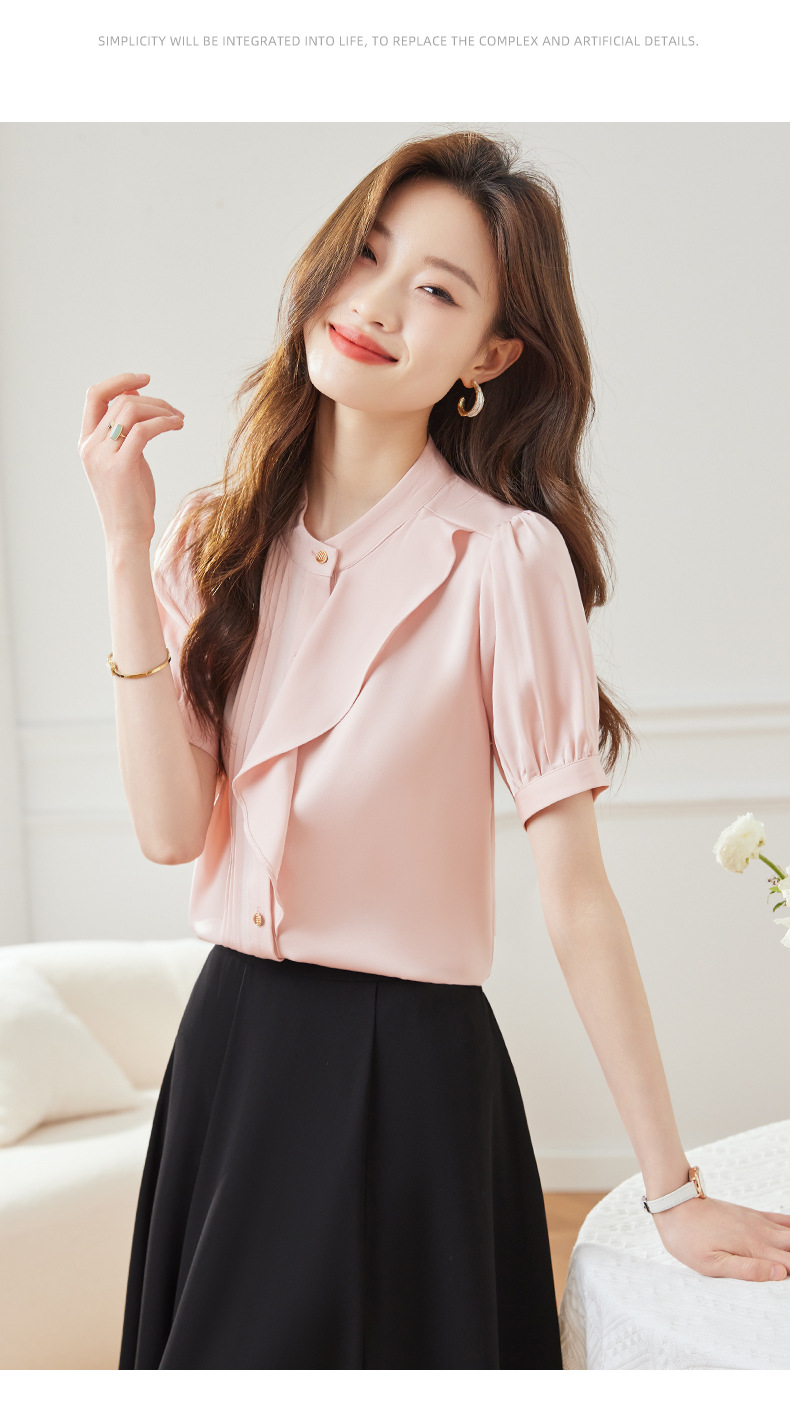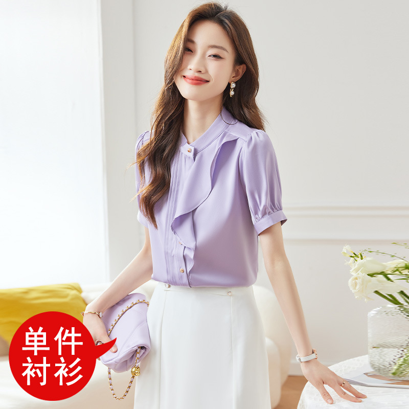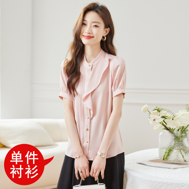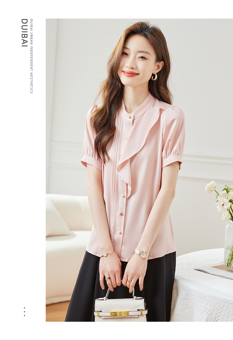 여름 얇은 드레이핑 반팔 셔츠 여자의 일본 스타일 작은 느슨한 모든 일치 디자인 셔츠 탑 재고